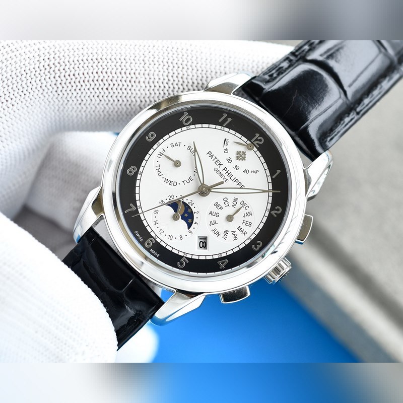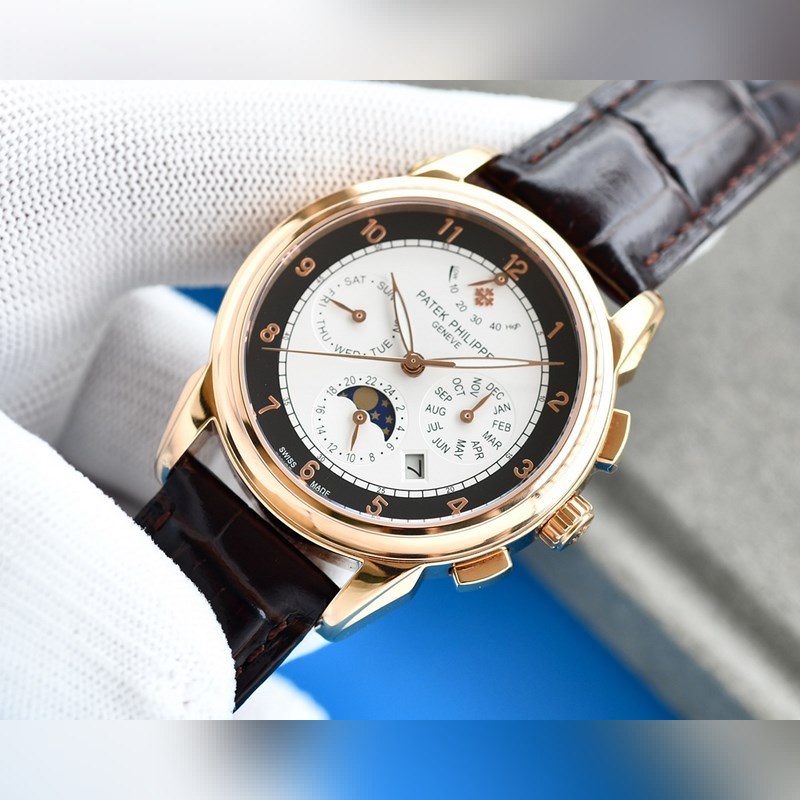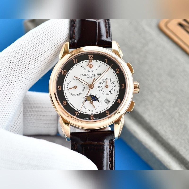 Equipped with imported 9100 kinetic multi-function 7-pin movement (0 repairs) ① Function (kinetic energy, 24 hours, week, stars, month/moon/sun) Imported 316 stainless steel with imported Italian calfskin original folding buckle ② The dial uses Arabic numerals, the highest version of the function, and the 7-pin design as the scale, which further shows the luxurious temperament of this watch ③ Size 42mm. Wear-resistant and scratch-resistant sapphire glass Super waterproof 50 meters Simple but not simple You can never own a Patek Philippe, you are just keeping it for your descendants. (Careful promise: The actual gloss and feel of the product are better and more exquisite. The dial and scale are lifelike. The shell and case craftsmanship are all master-level light inspections, plus the new era of machine high-tech forging, shocking and noble. You deserve to have the same appearance and ingenuity