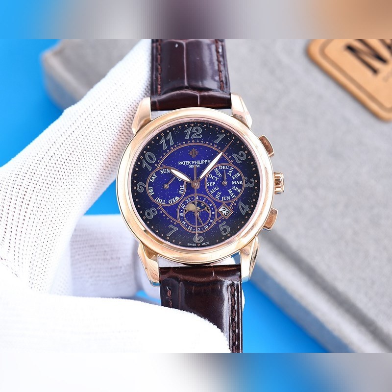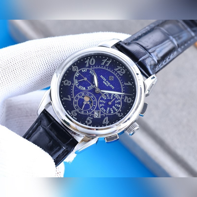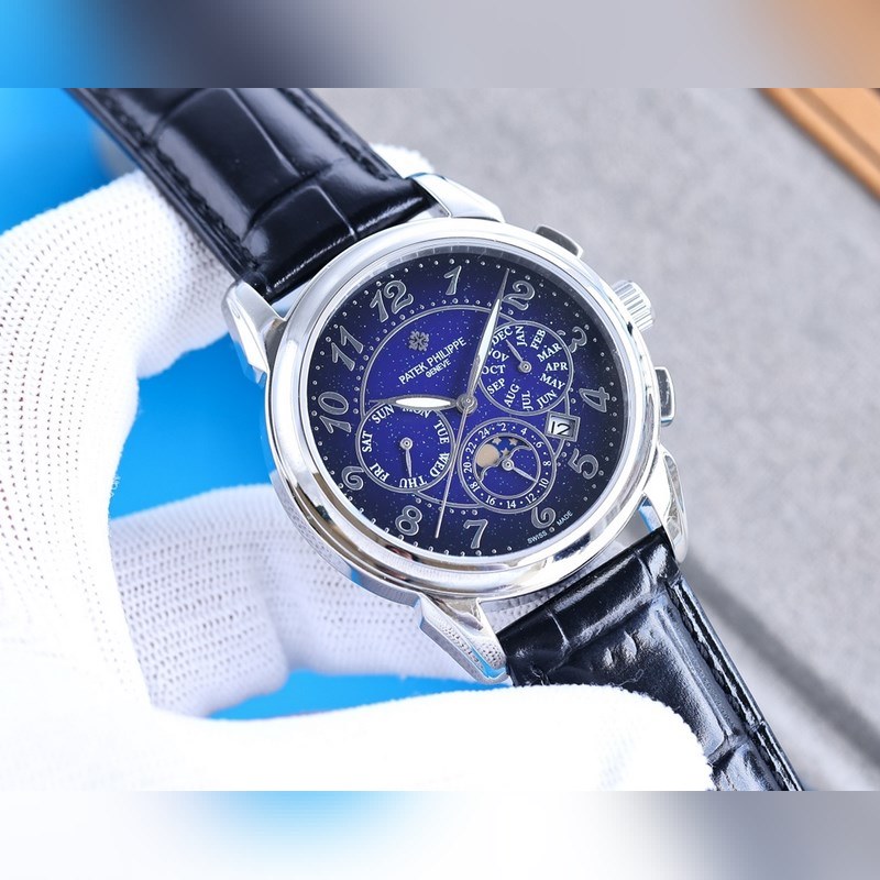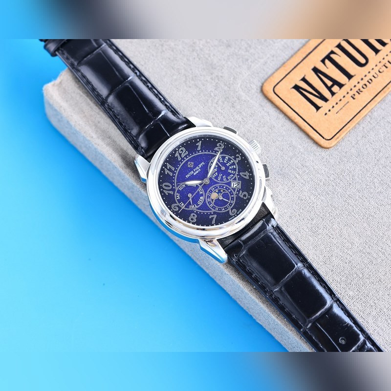 Equipped with imported 9100 multi-function movement (0 repairs) functions (24 hours, week, star, month), imported 316 stainless steel and imported Italian calfskin, original folding clasp, size 42mm. Wear-resistant and scratch-resistant sapphire glass, super waterproof 50 meters, simple but not simple, you can never own a Patek Philippe, you are just keeping it for your descendants. (Solemn promise: the actual gloss of the product is better and more exquisite, the dial scale is lifelike, the shell craftsmanship is all master-level light inspection, plus the new era machine high-tech forging, it is shocking and noble. You deserve it