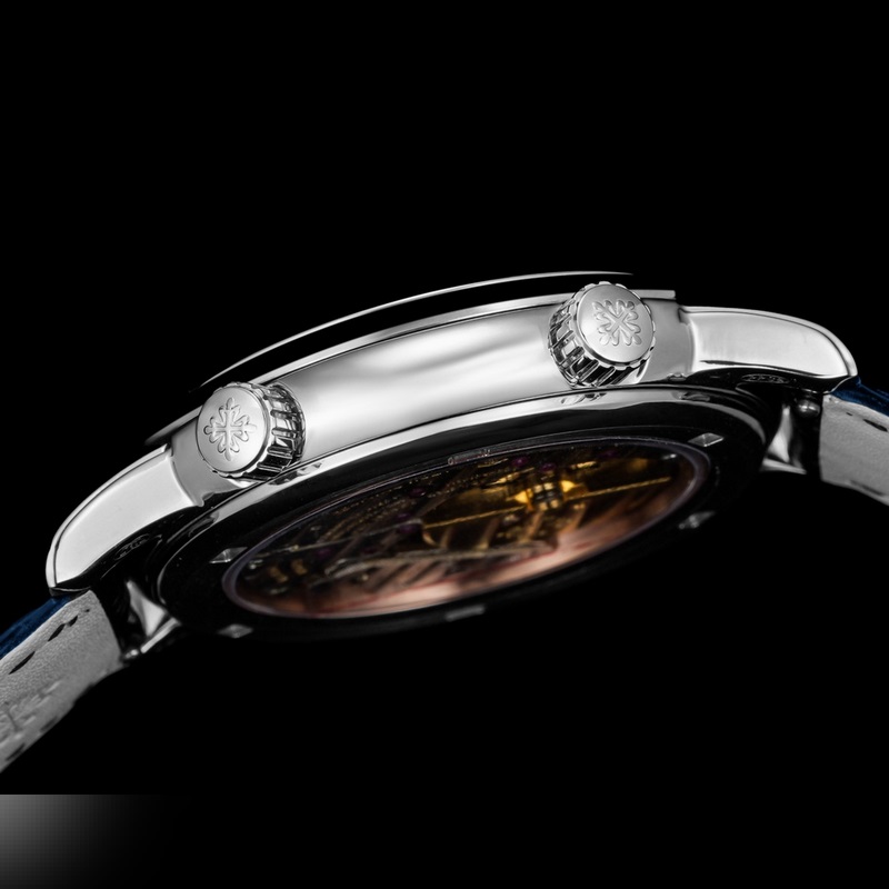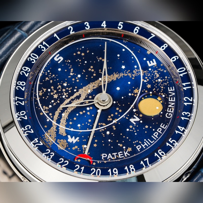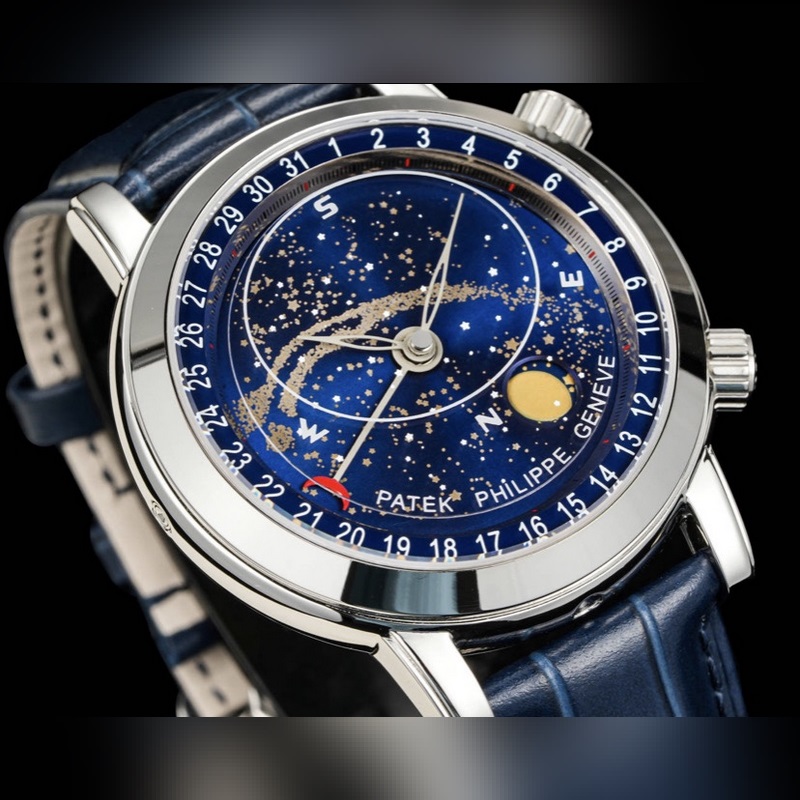 Patek Philippe Super Complex Function Timepiece Series: Starry Sky (Super Luminous) True Starry Sky Orbit Dial, the star chart dial is composed of three different discs, two discs display the starry sky background and the moon phase respectively, and another transparent crystal disc displays the star chart and the Milky Way, perfectly interpreting the vast starry sky. The original 240 LU CL C pearl rotor movement can be seen through the bottom cover, with a power reserve of up to 48 hours. The diameter of the entire watch is 44×11, which is consistent with the original. The quick-release strap is a hand-sewn bright square scale strap with an original folding buckle. This extraordinary timepiece demonstrates Patek Philippe’s exquisite watchmaking craftsmanship and outstanding pioneering spirit in the field of complexity. Wearing the entire starry sky on your wrist is worth it.