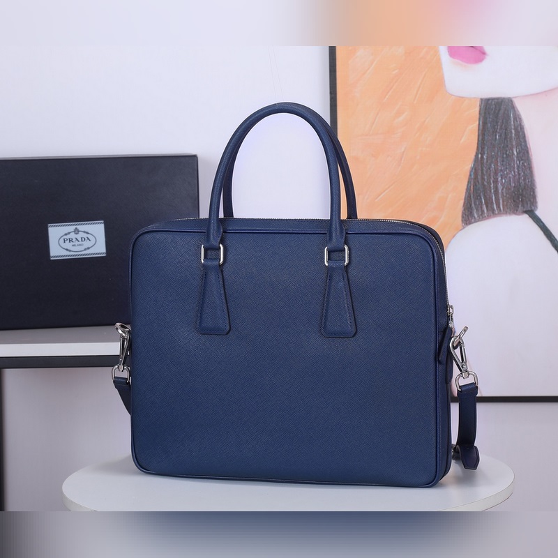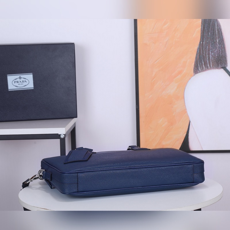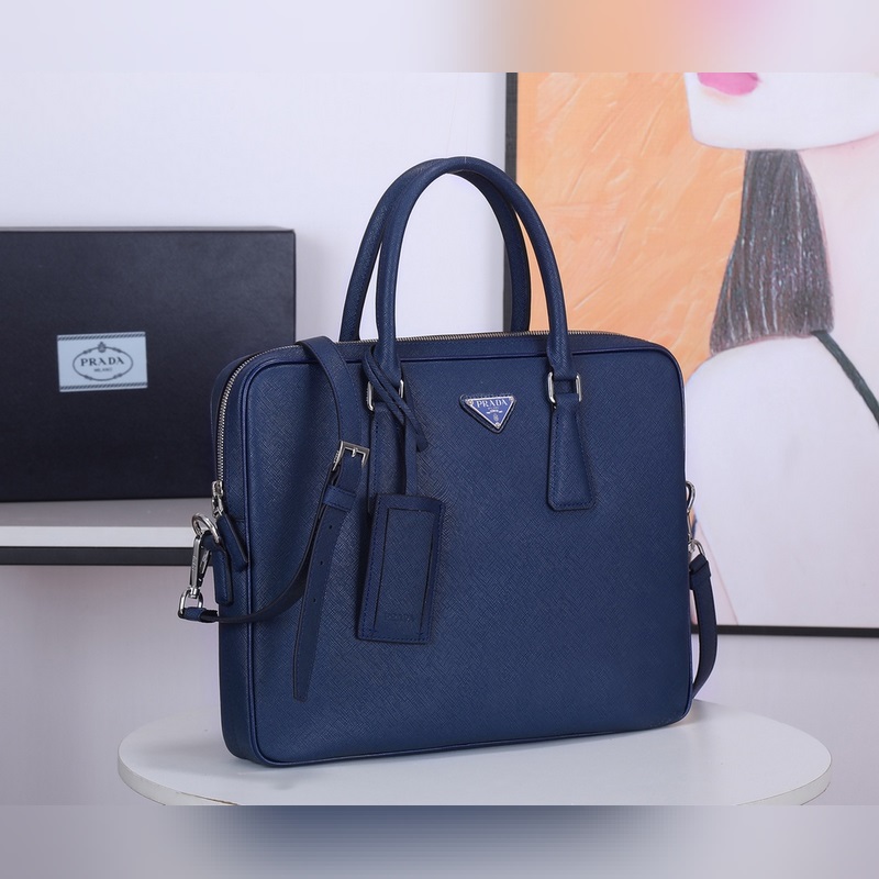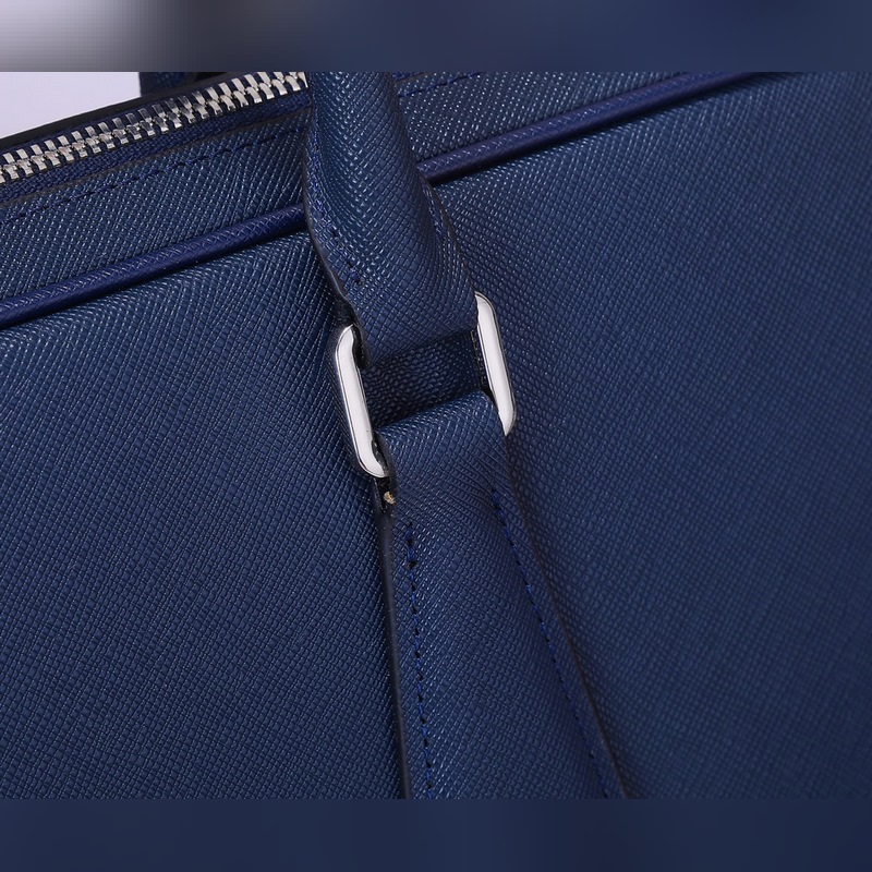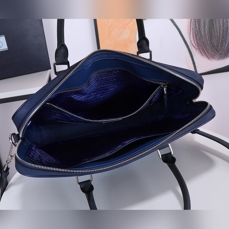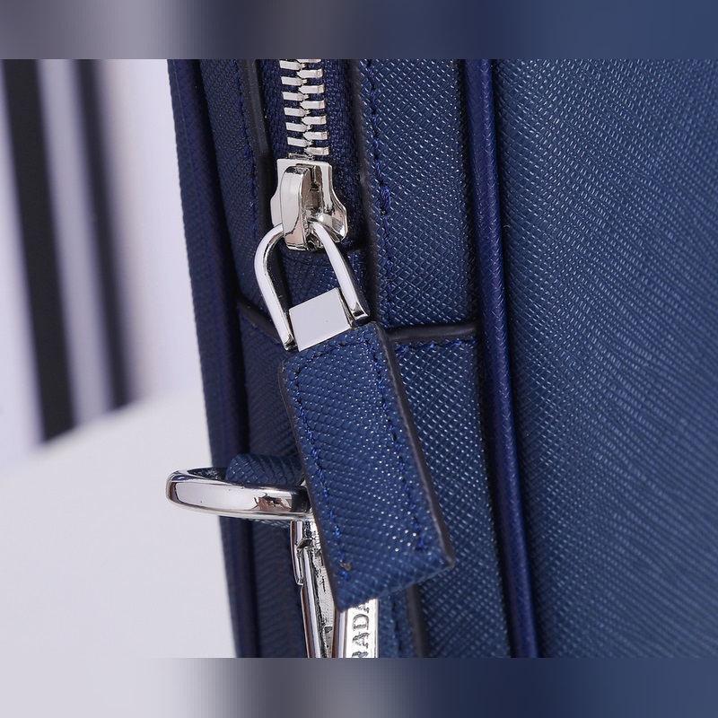 Imported Italian Saffiano cross pattern Classic triangular enamel logo Imported equipment + lines are clear European ZP synchronized original hardware accessories Imported environmentally friendly oil edges Zipper opening and closing Perfect details Fashionable and casual A must-have for tall, rich and handsome men Black and blue