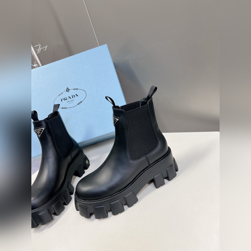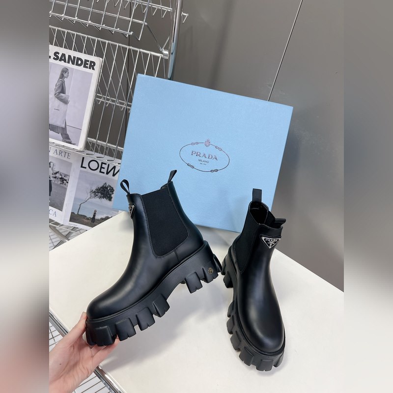 Prada’s toPrada version platform thick-soled pocket triangle logo couple boots