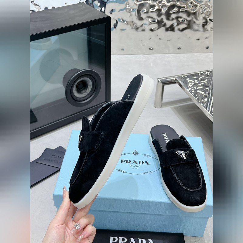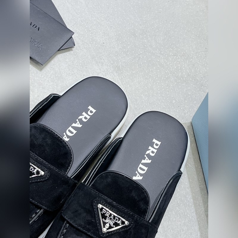 Prada couple Prada 2023 latest loafers and half slippers, popular series, interpreting urban fashion, design highlights functionality and technology, novel embossed rubber triangle logo shows the brand’s iconic elements