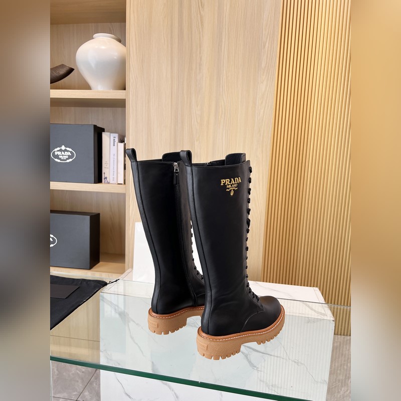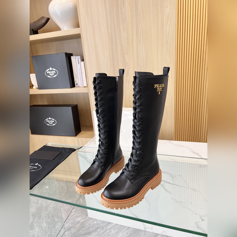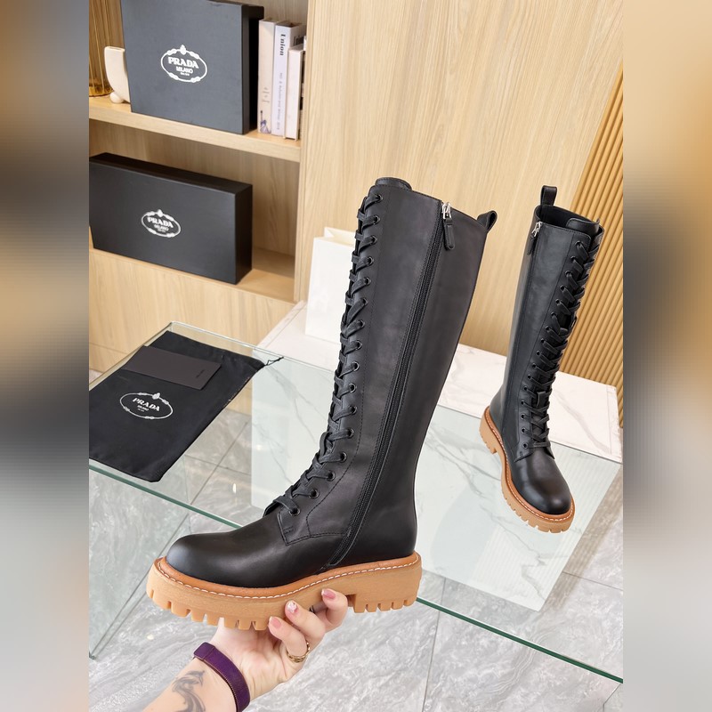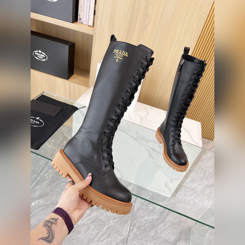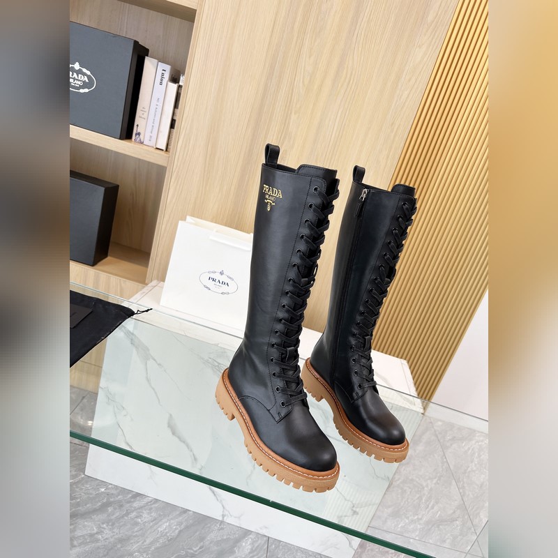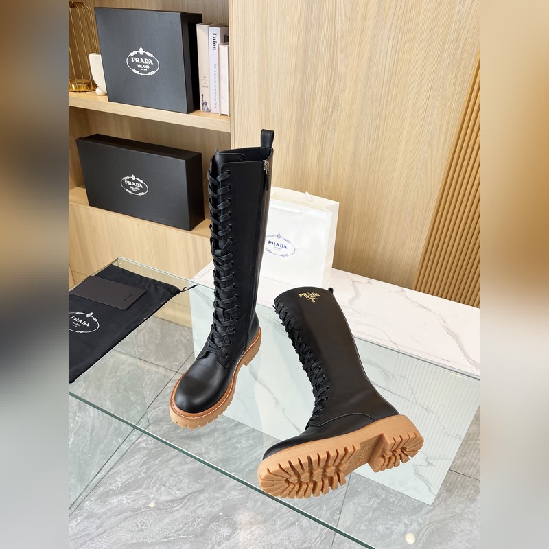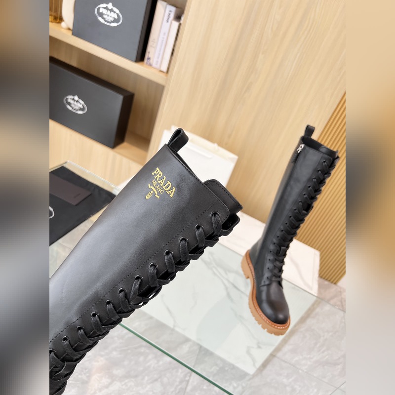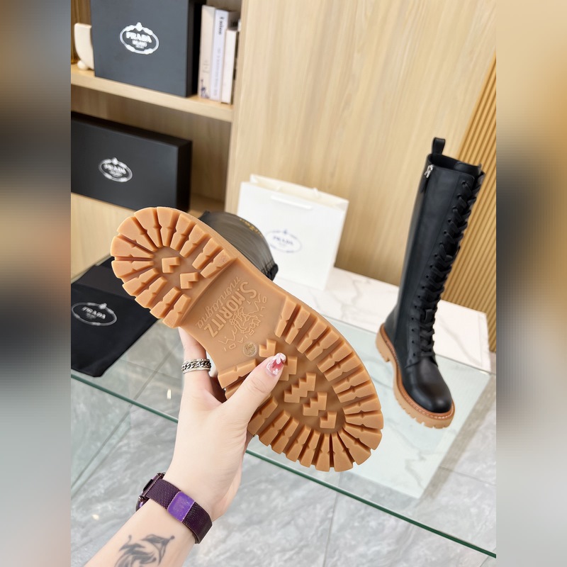 New Prada 2025 Fall/Winter catwalk boots. Taikoo Hui originals purchased and re-released. The shoes are very light and comfortable to walk in. The triangle logo design is worth having. The shoe shape is very good, with a very distinctive design. Highly recognizable. The leather is soft and very comfortable. Fabric: cowhide. Lining: cowhide. Size: 35-41