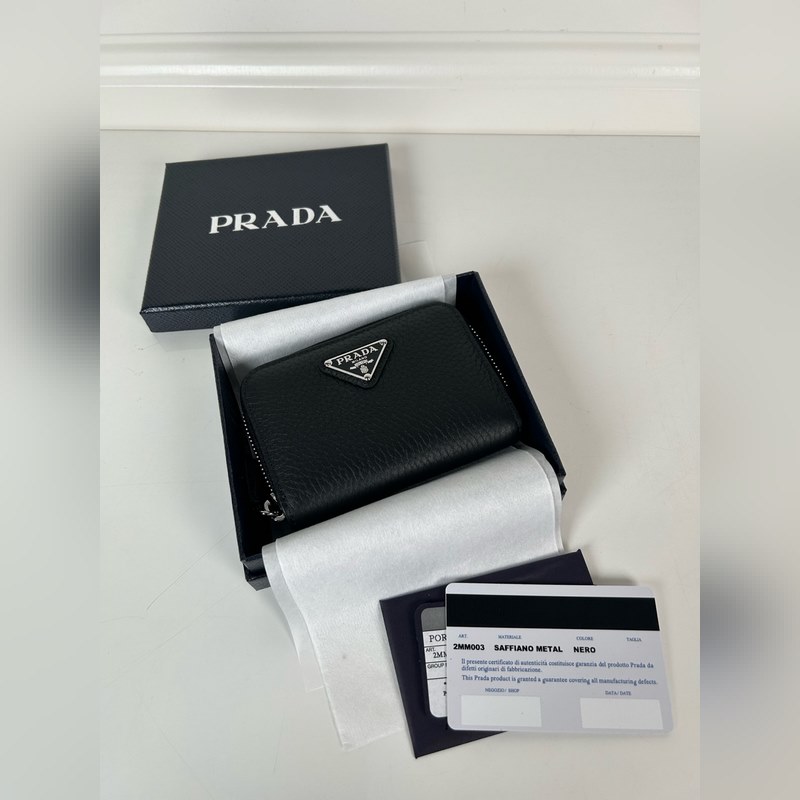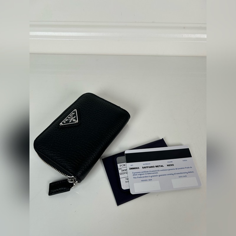 Prada deerskin unisex card holder, model 2MM003, classic and practical zipper design, pleated card slots inside, convenient for classification and storage, perfect for going out with a mobile phone or putting it in a small bag in summer, size 11×7.5cm, original quality, your best choice