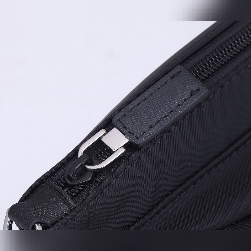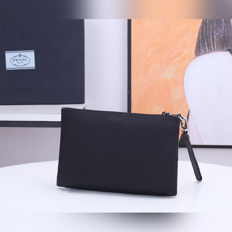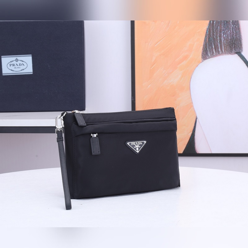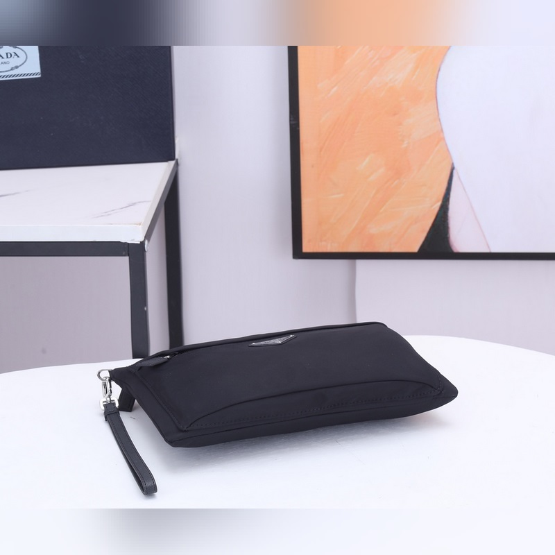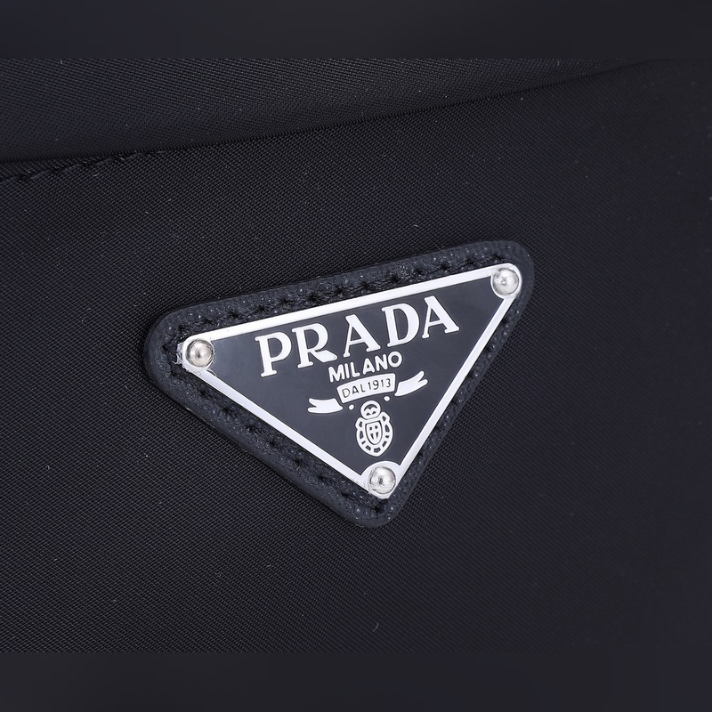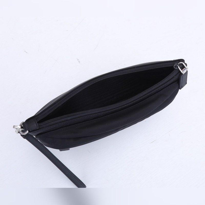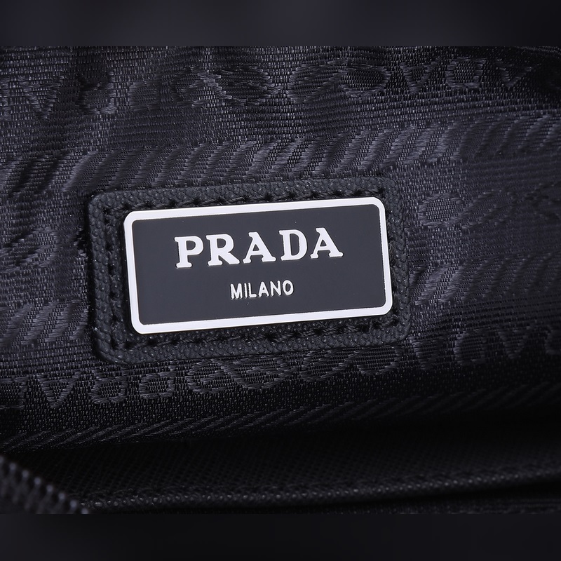 Made of imported nylon waterproof fabric, detachable leather wrist, Prada logo lining, two inner pockets, one of which has a zipper