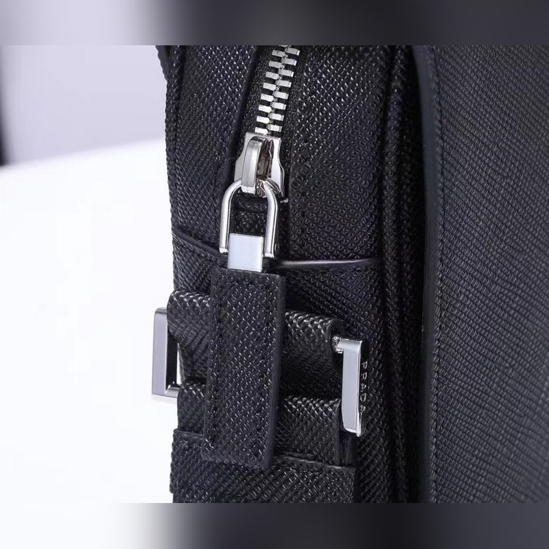 This Saffiano leather shoulder bag interprets a beautifully structured silhouette. An adjustable nylon shoulder strap gives the shoulder bag a unique personality. The triangular enamel logo on the front and the internal logo nameplate zipper closure are simple and elegant. Men, hurry up and get it