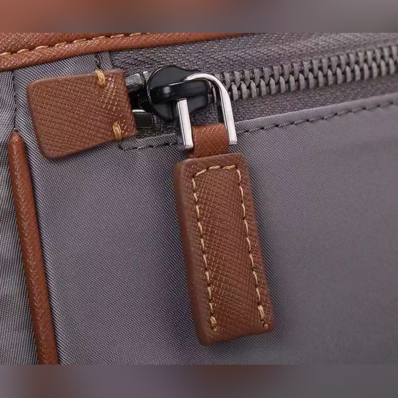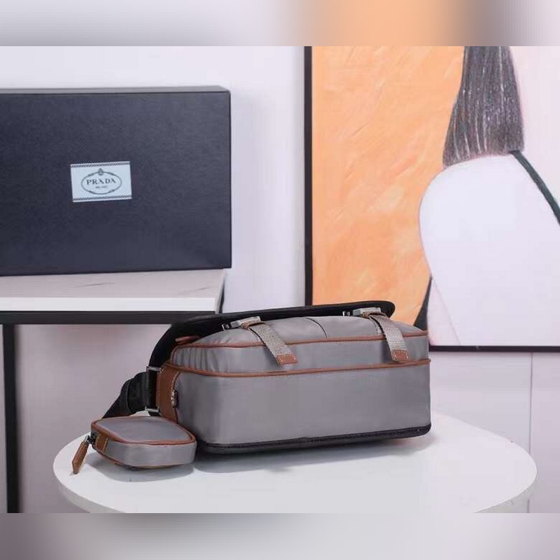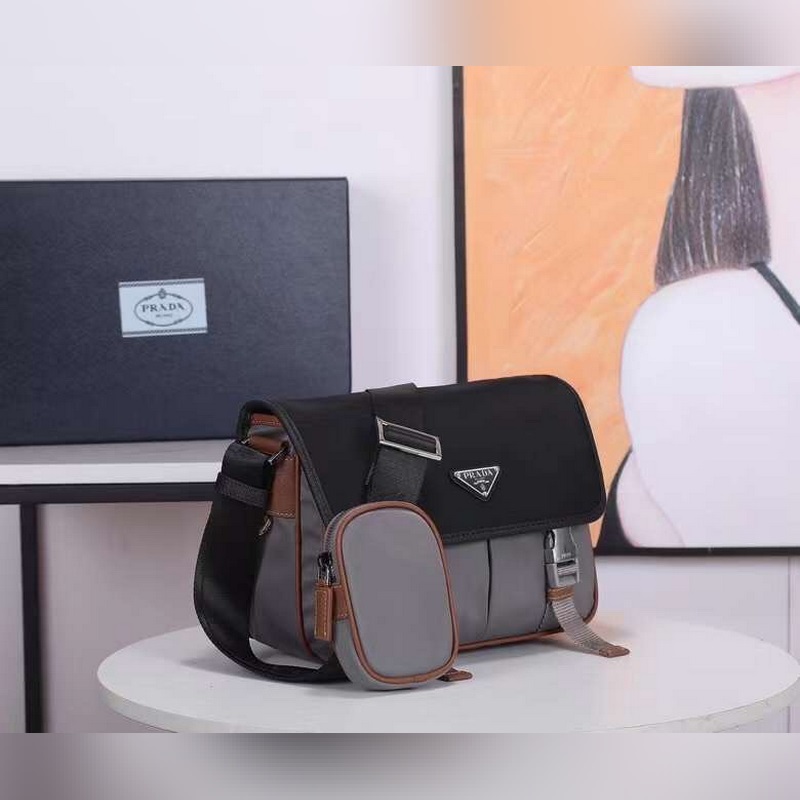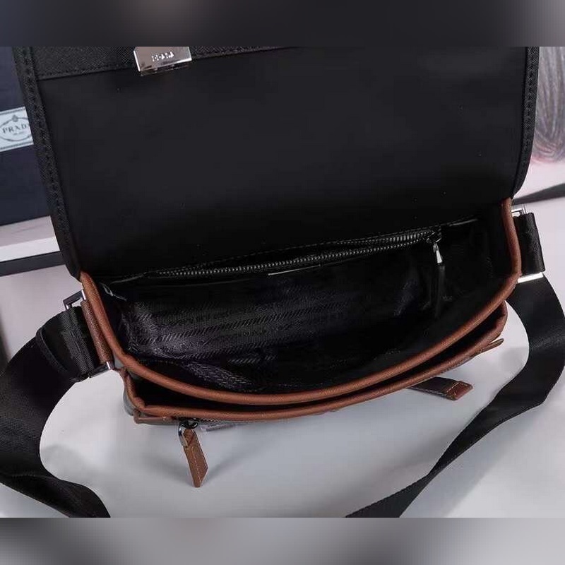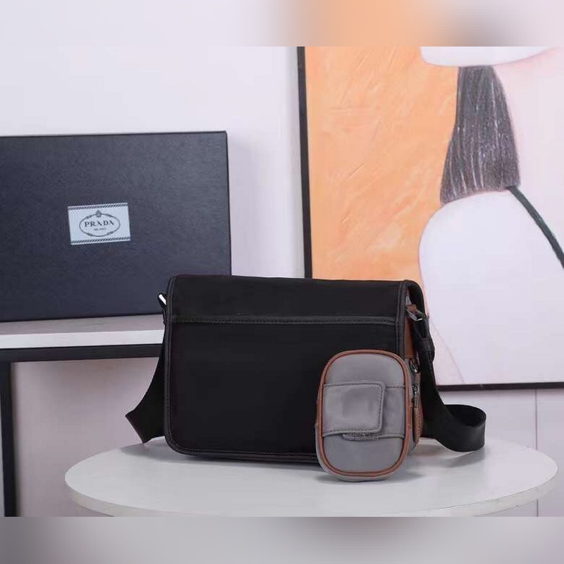 This nylon flap handbag is decorated with classic Saffiano leather trim, with two side buckles and decorated with the iconic triangular metal logo, showing a fashionable design style. It is made of imported nylon and Saffiano leather, two front pockets, one of which is a zippered back zipper pocket, two internal mobile phone pockets, and adjustable nylon logo jacquard shoulder strap. It is a classic and fashionable messenger bag that men love.
