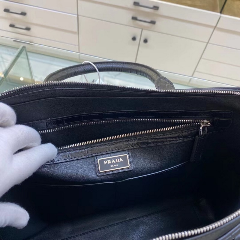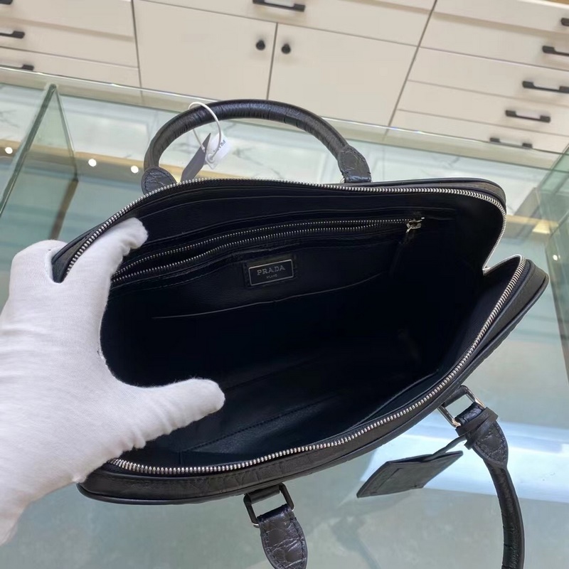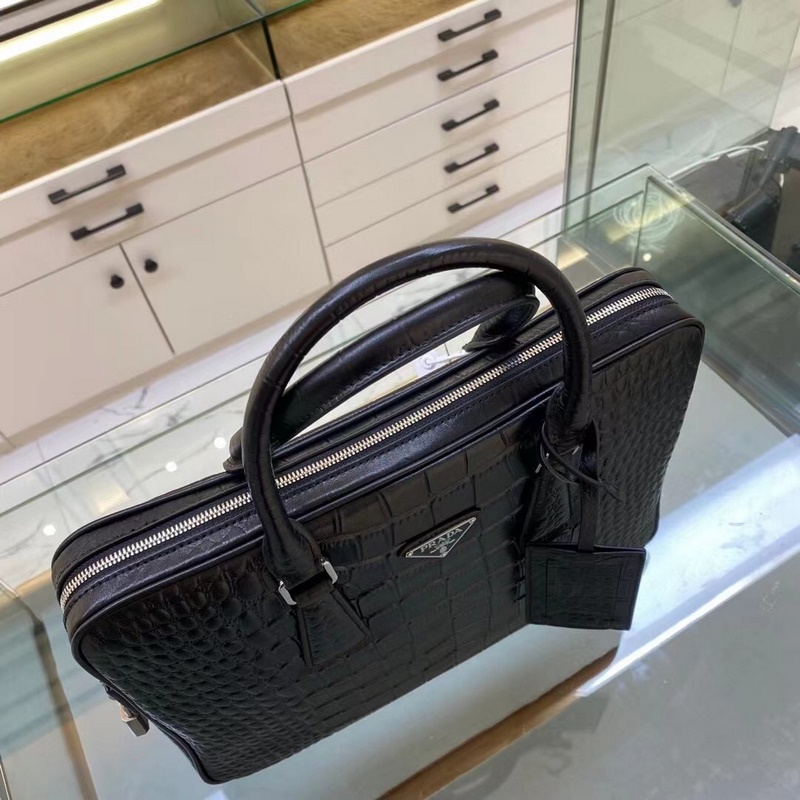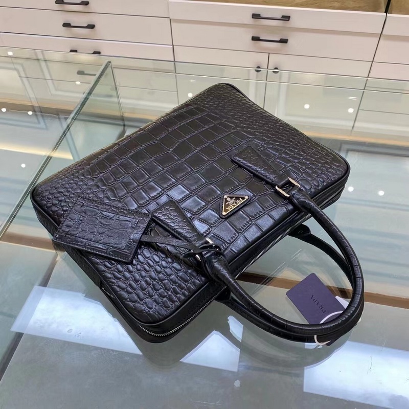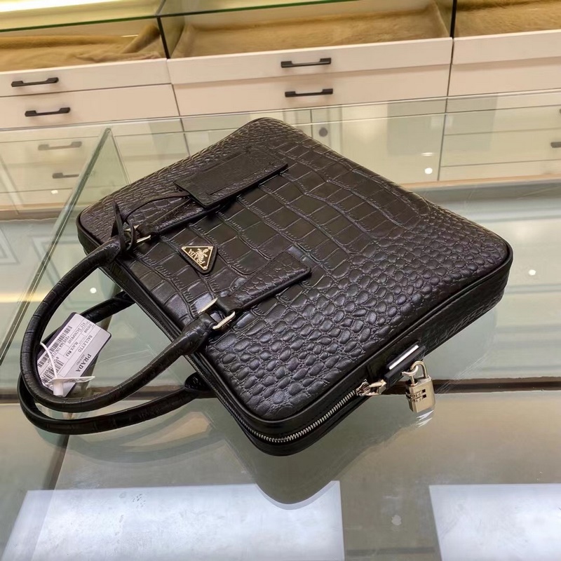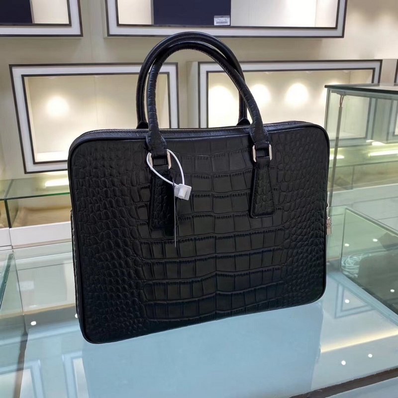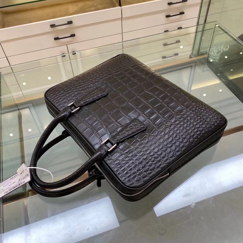 Prada Model No.: 2VE368 Crocodile pattern black briefcase