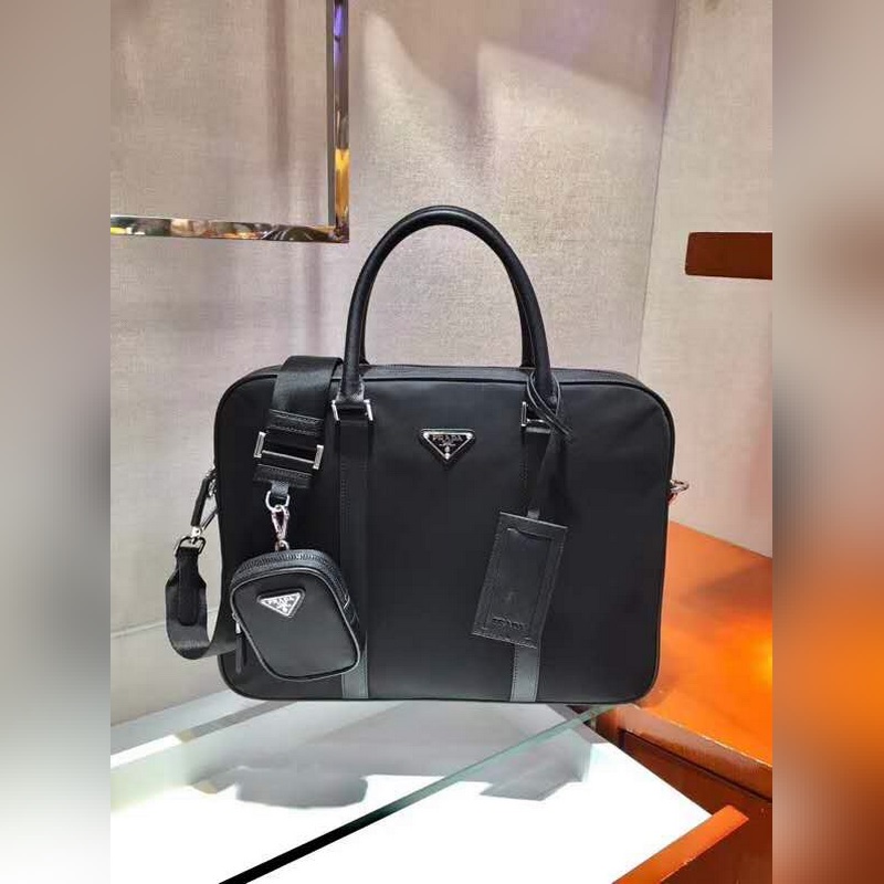 Made of imported Saffiano cross-grain cowhide and nylon fabric, with a detachable and adjustable nylon shoulder strap design, it can also be carried by hand, making it more fashionable. What I love most is that the shoulder strap also has a small pendant (small bag), which can also be hung with other bags and trousers as accessories. This briefcase design is very practical, so men should hurry up and buy it
