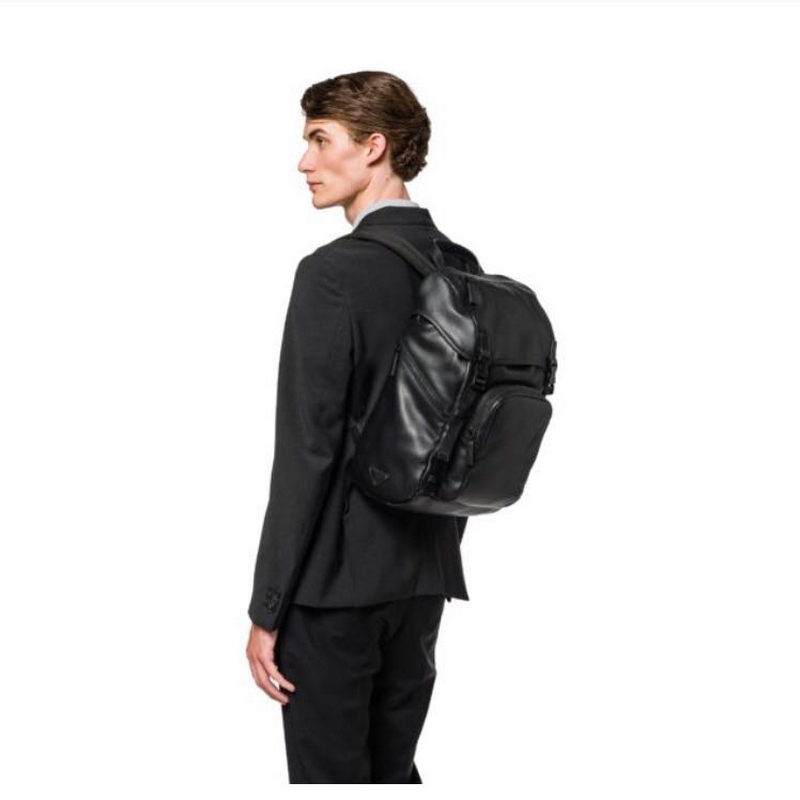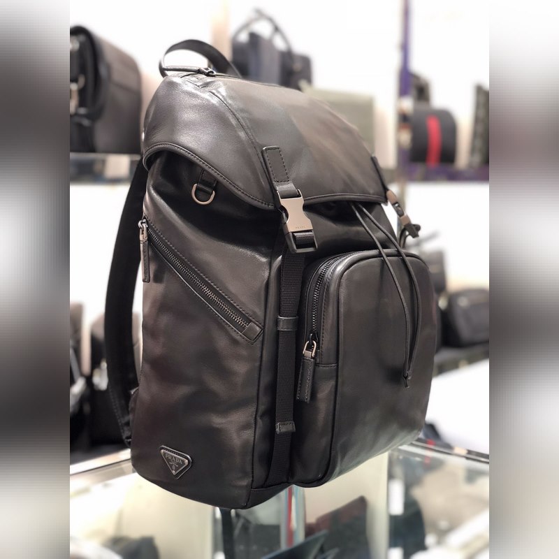 Inside logo plate and outside logo Gun-colored metal accessories Four zipper pockets on the outside: including two front pockets and two side pockets Two inner pockets, including one zipper pocket, practical and fashionable, men’s favorite, length 27x height 45X bottom 17cm. Number: JY96181700
