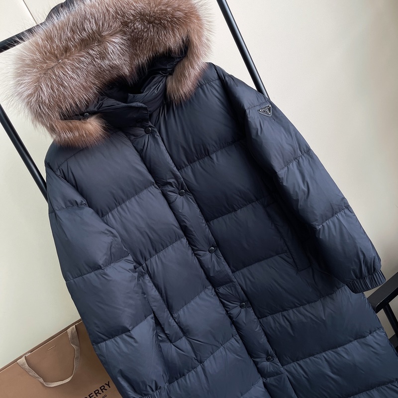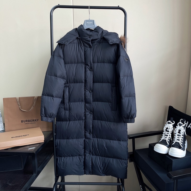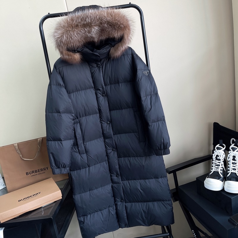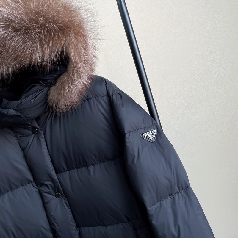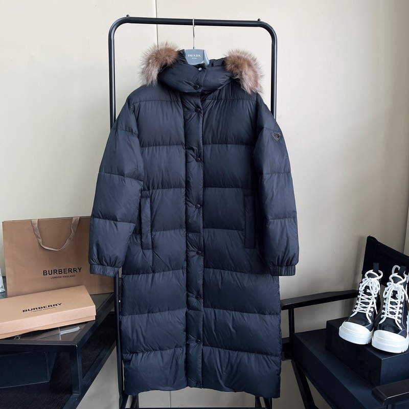 PRADA Autumn Winter Long Down Jacket with Fur Hood