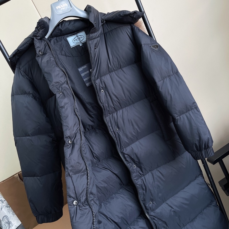PRADA’s latest autumn and winter fur collar hooded long down jacket