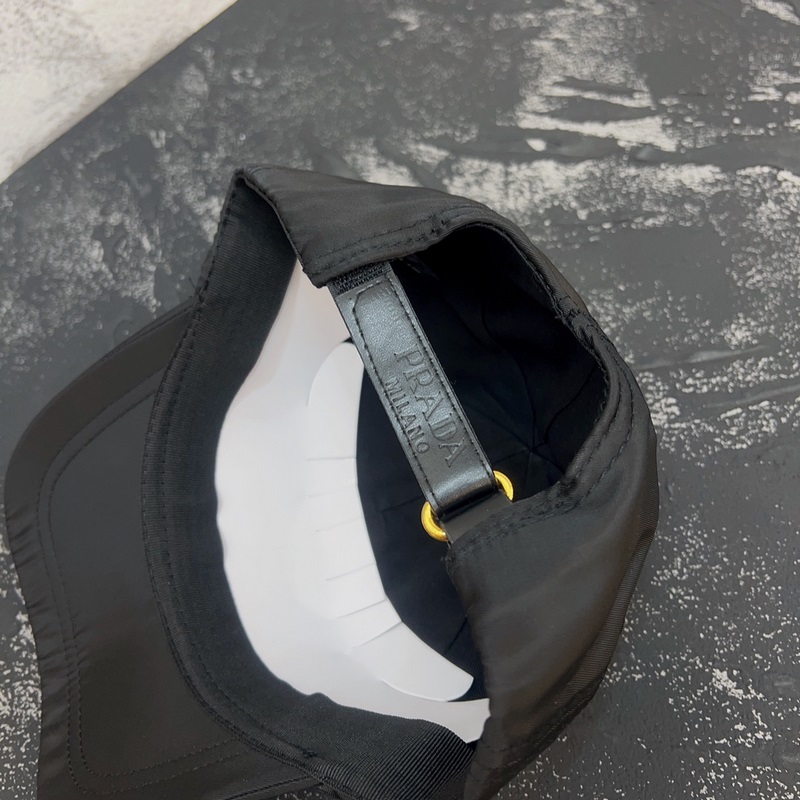 PradaFashionable favorite triangular logo baseball cap, classic nylon style,