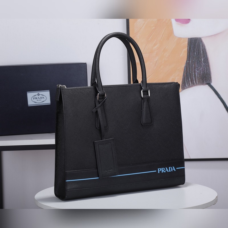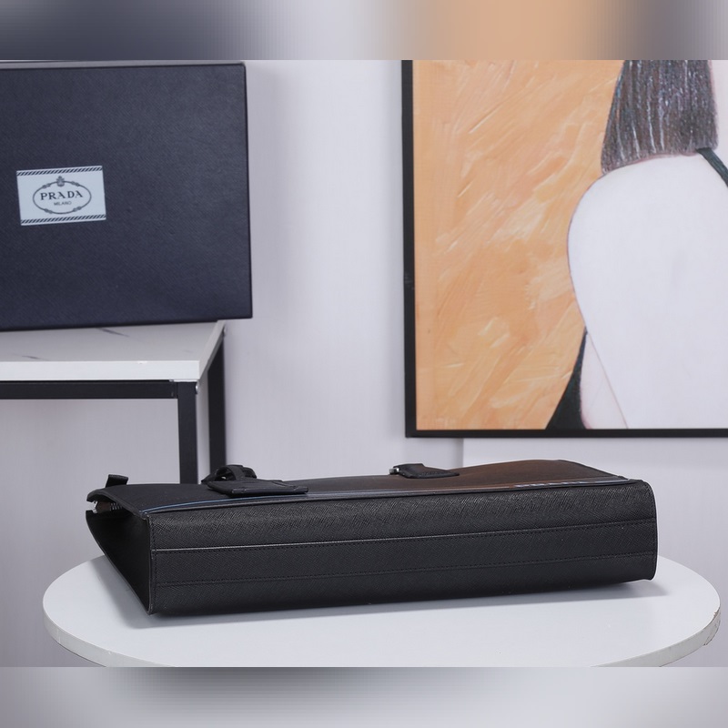 PRADA Men’s Briefcase Model 2VG030 Black Print Blue
