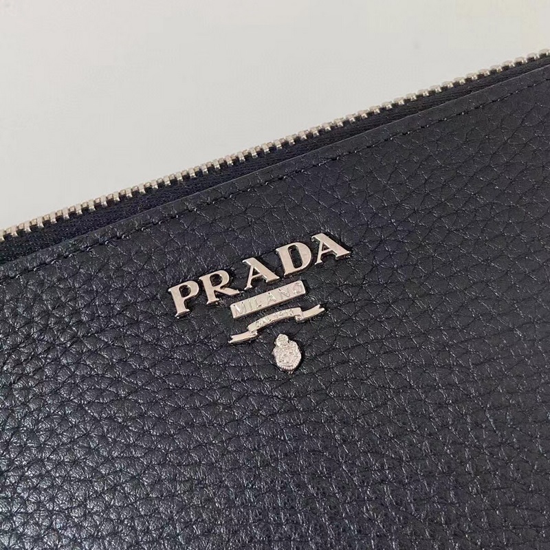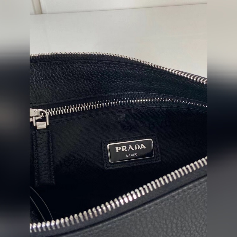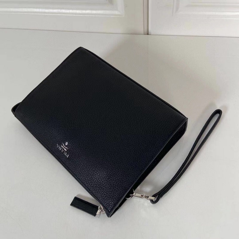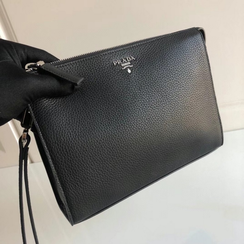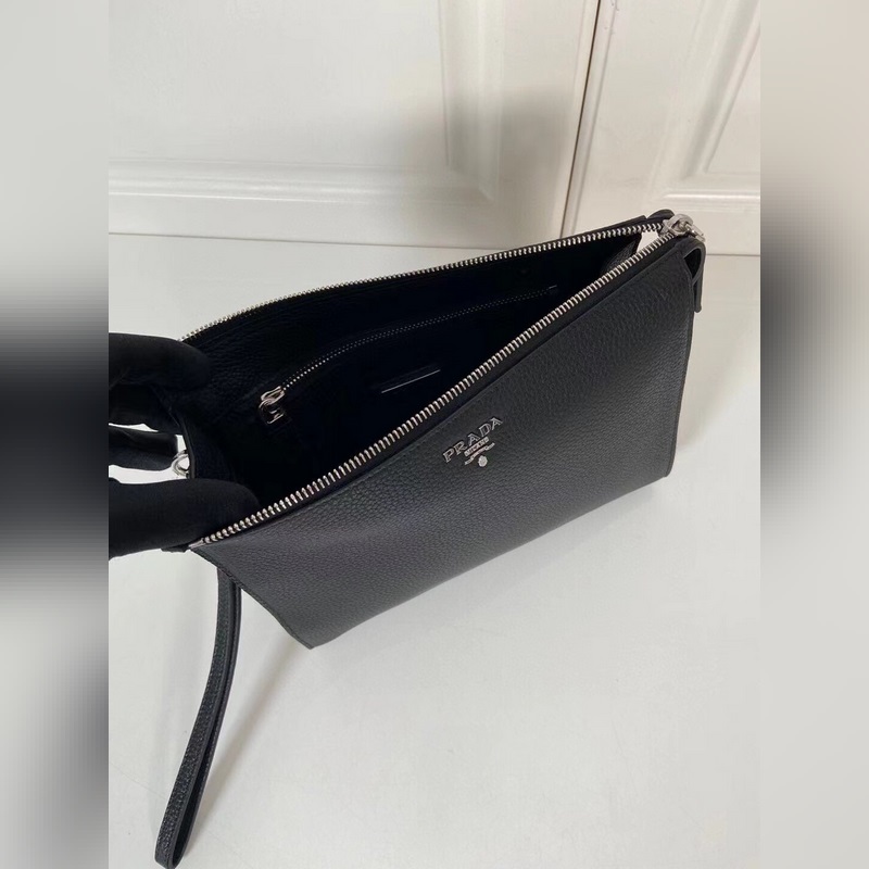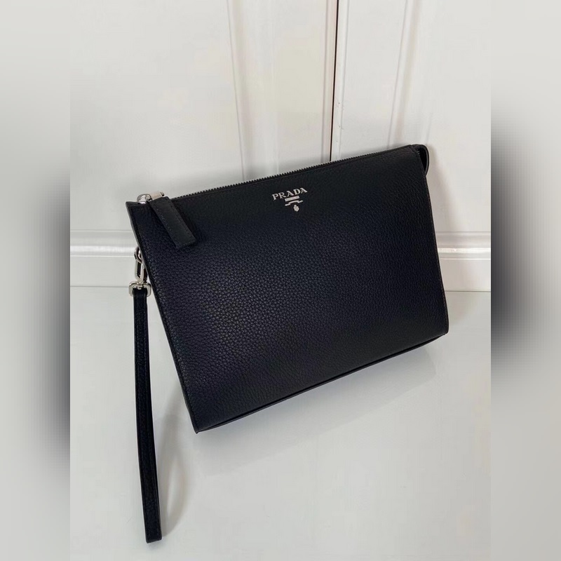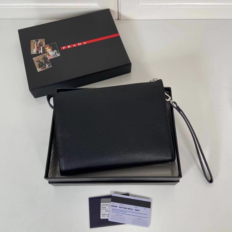 P Men’s Clutch, Black, Model 2NE009, Silver Scattered Mark, Top Deerskin + Stainless Steel Hardware, Top Yuandan Quality, Dimensions: Length 24 × Height 18 × Width 6.5cm