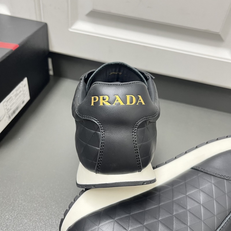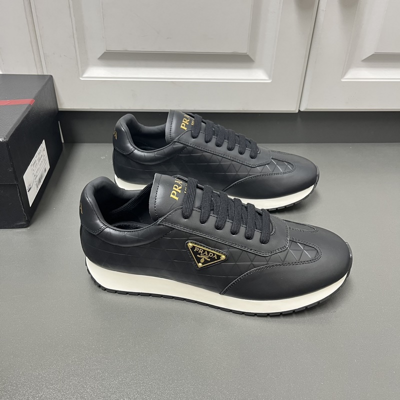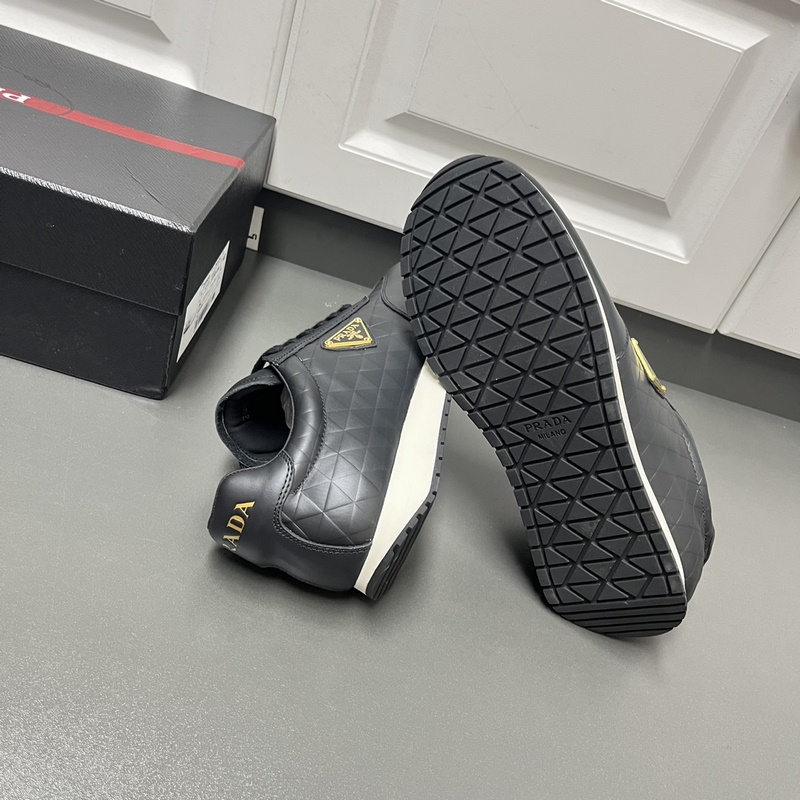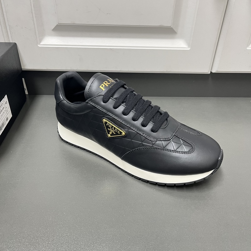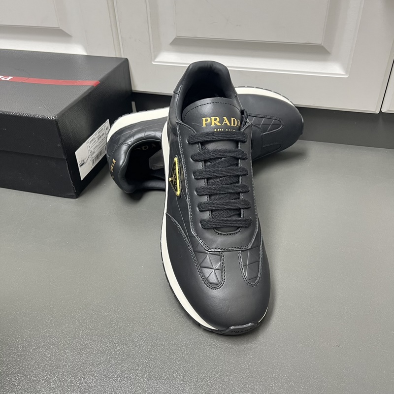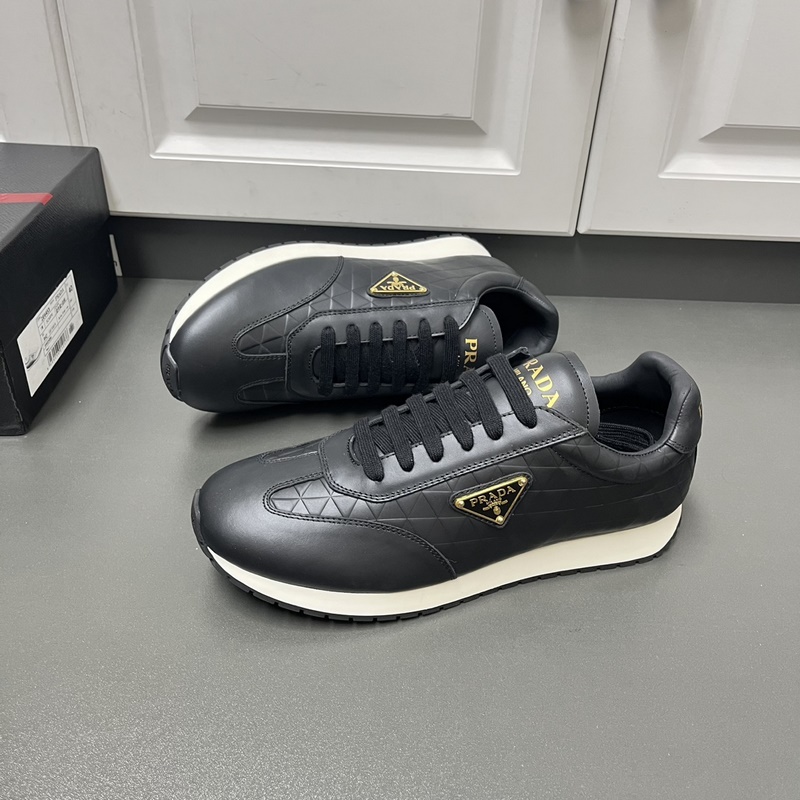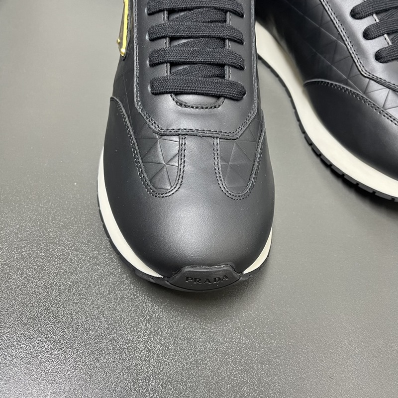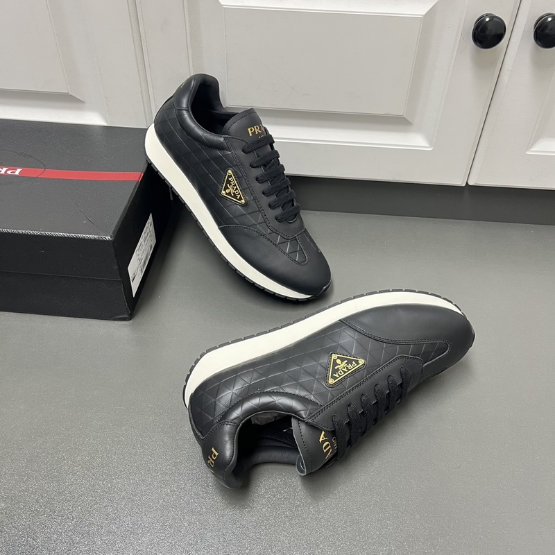 This pair of sneakers is casual and versatile, made of imported calfskin uppers, decorated with triangular three-dimensional embossed effects, and paired with a rubber foam midsole and a lightweight embossed widened rubber sole. It is light and stable, with a signature enameled triangular metal logo on the side, and a screen-printed logo on the tongue and heel, highlighting its unique charm. The cowhide lining and foot pads make it easy, comfortable and breathable to wear.