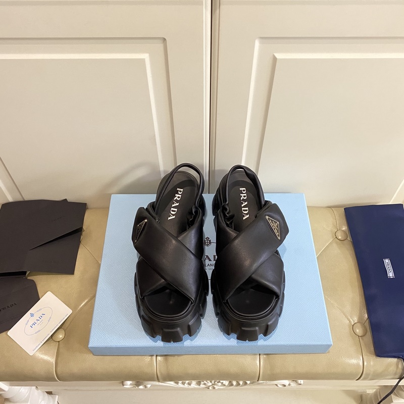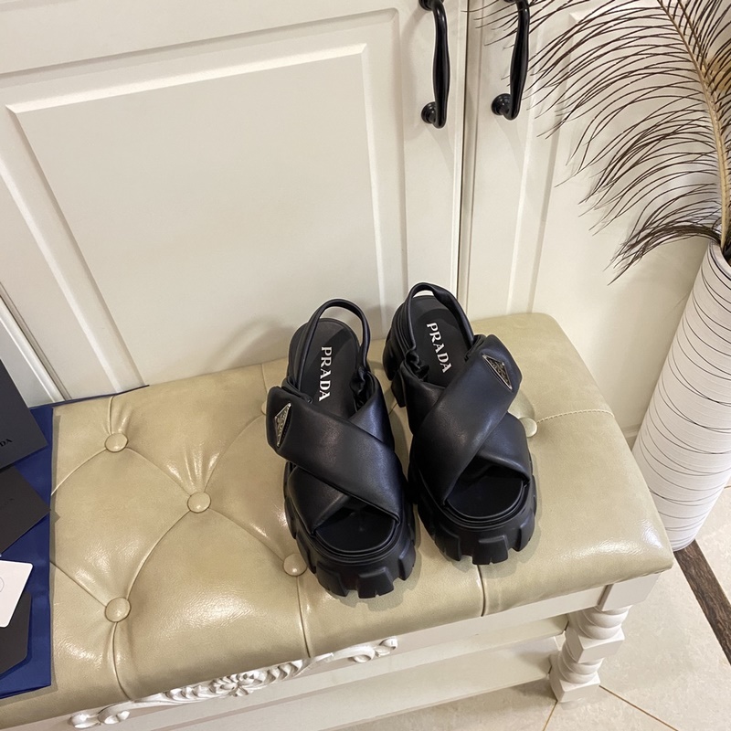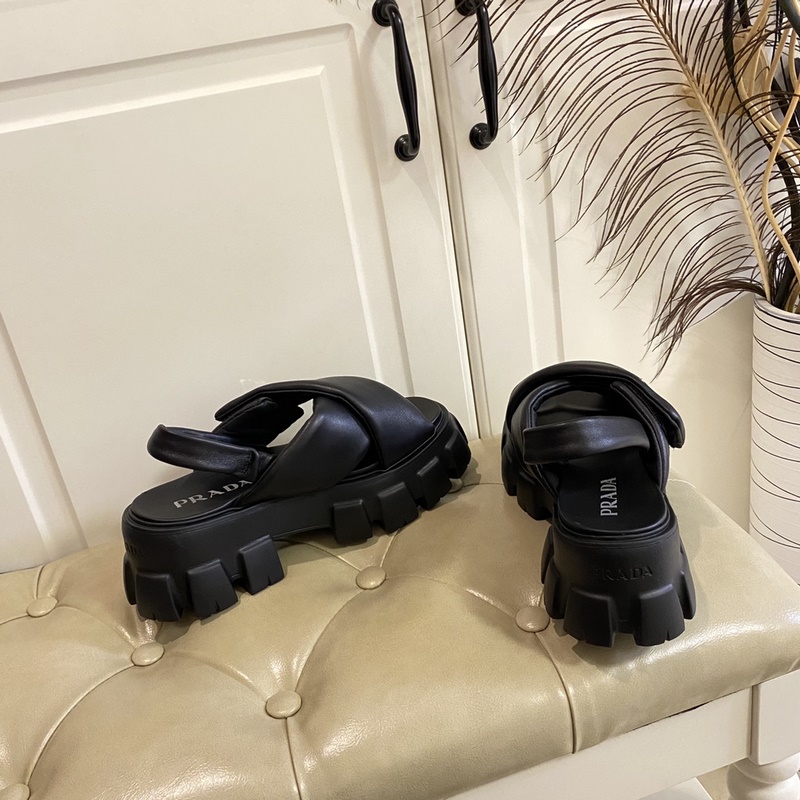 PRADA New Collection Adjustable Velcro Design Leather Platform Sneakers