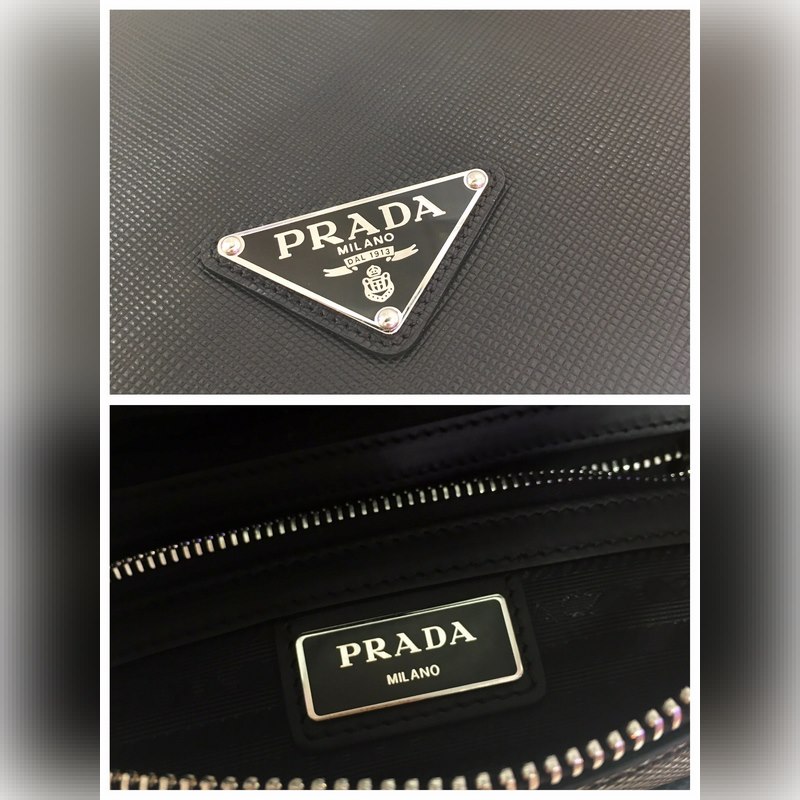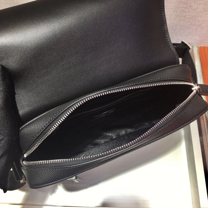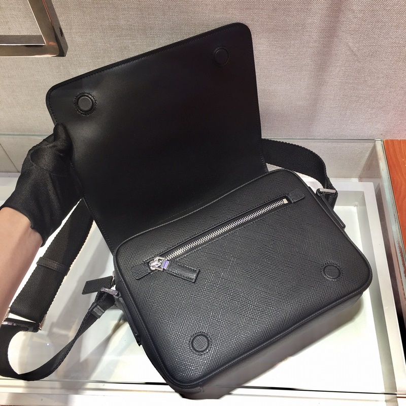 This Saffiano leather shoulder bag features a beautifully structured silhouette. An adjustable nylon shoulder strap gives the bag a unique personality. The front triangular enamel logo and the internal logo plaque zipper closure are simple and elegant. Men, hurry up and get it. Length 24 x height 18 x bottom 6cm No.: JY96181380