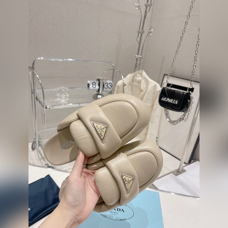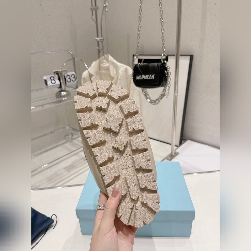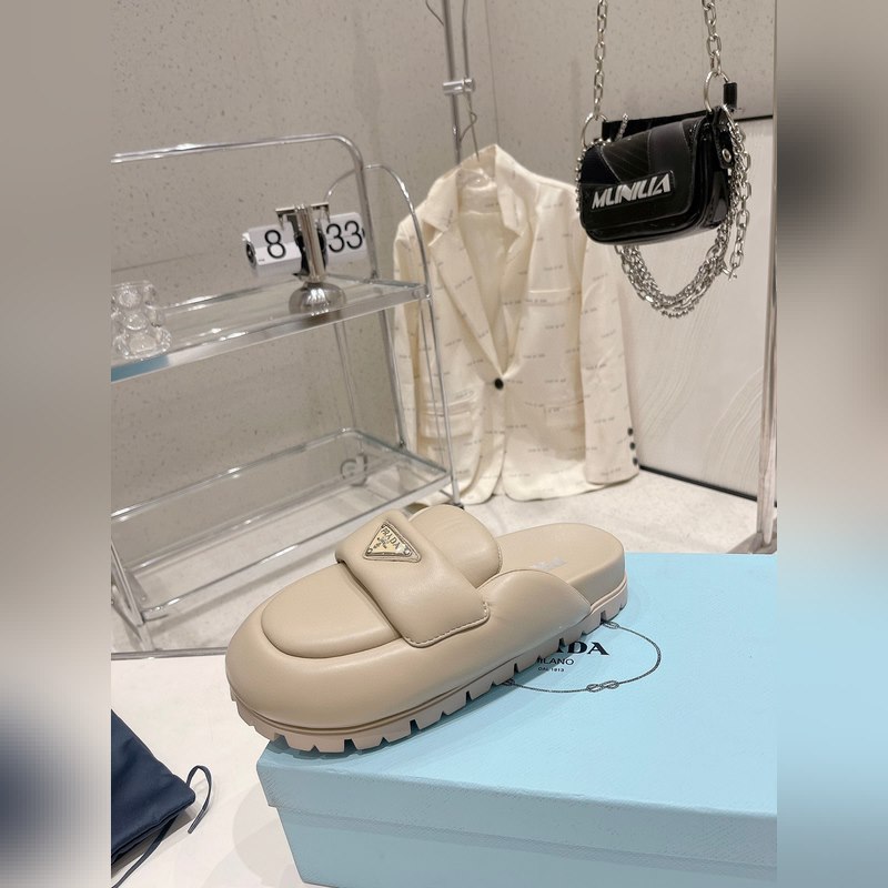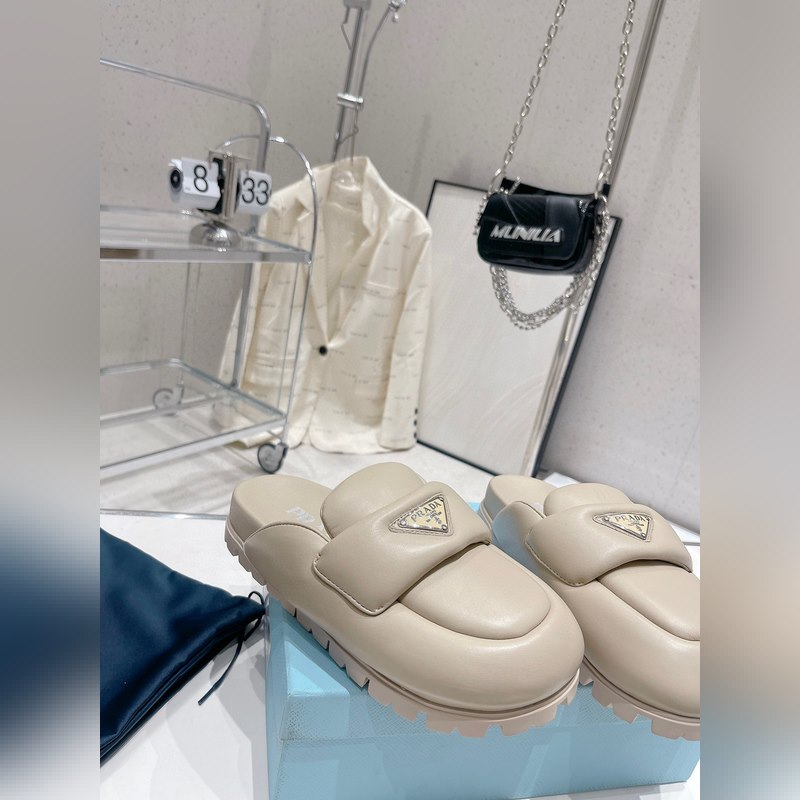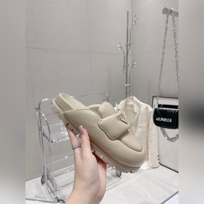 The toPrada version of Prada’s bread slippers, mules are very convenient to wear. You don’t need to bend down or tie shoelaces when you go out to change shoes. Just put them on and go. They can be worn in spring, summer and autumn. This pair of mules has a rubber foam sole and is very light. The iconic enamel triangle logo of Rada is also highly recognizable and versatile.