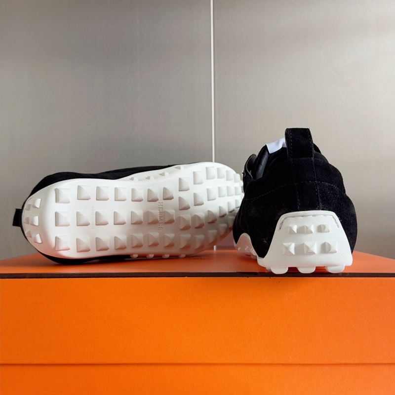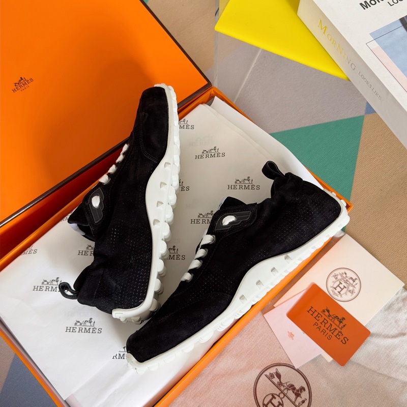 Original purchase, development and production H family Hermes In sneakers Perforated soft suede goat leather sneakers, equipped with soles, decorated with classic Medor rivets, creating a comfortable and casual style