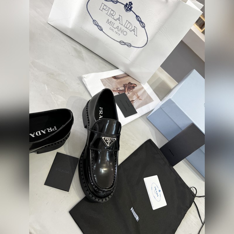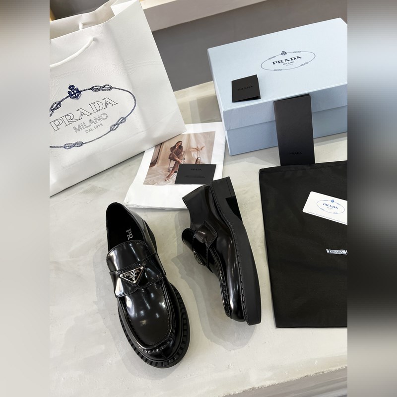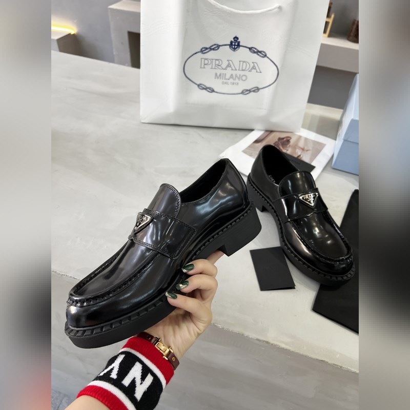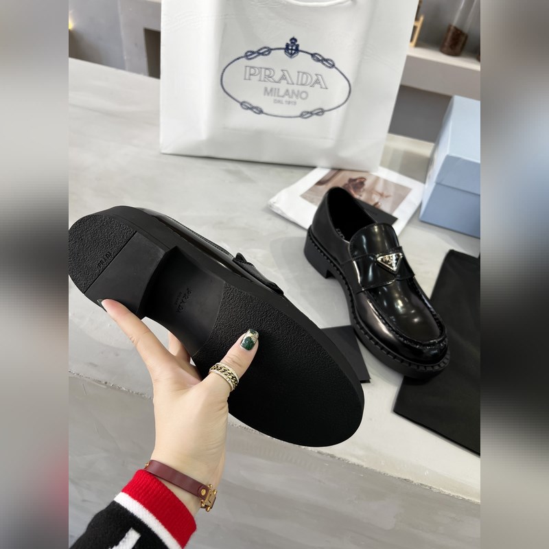 RADA Prada 2024 Spring and Summer Upgraded Triangle Logo Loafers Compared with last year’s old loafers, this model’s triangle logo is changed to silver. A gear print design is added to the welt, which feels more delicate and fashionable. The original version is purchased and disassembled for reproduction to restore the authentic taste. The upper of the toPrada purchasing version is made of original open-edge pearl cowhide, which is very textured. The inner lining and foot pads are made of top-grade mixed sheepskin. The Z-molded outsole is non-sliPrada and wear-resistant. Women’s model 35-41