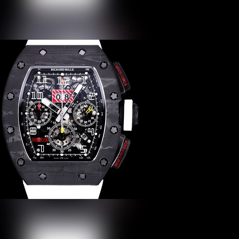 Carbon fiber material restores the original texture High-grade original black ceramic White ceramic restores the original The perfect ergonomic design coincides with the brand’s pursuit of perfection. Every component of the RM 011 is an aesthetic expression of its function. The RM 11-FM watch retains the most recognizable iconic shape, but the craftsmanship used is still far beyond the past. For the case, the titanium style is shown in the picture, but there are also rose gold and titanium versions to choose from, but no matter which one, they all have a finely crafted brushed surface, which is matched with polished chamfers, showing a sharp contrast. Equipped with a 7750 chronograph mechanical movement, clearly marked with functional fonts (Start/Stop and Reset/Fly-back), its design is inspired by the pedals in F1 racing cars. All these optimization changes make this RM 11-FM flyback chronograph automatic watch more sporty and trendy than previous styles.