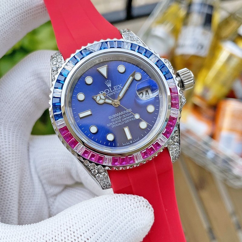 Continuing the essence of Rolex Submariner, the customized version of the Submariner with gemstone bezel is now available. [Color] Joining hands with high-end jewelry factories, 72 black, green and blue sapphires are inlaid on the Submariner bezel in corresponding colors, matched with diamonds on the case ear stems, which is like radiant light and an eye-catching artifact. The movement is still equipped with the new original Citizen 8215 fully automatic mechanical movement, which has accurate timekeeping, excellent performance and a power reserve of up to 48 hours. The 316L stainless steel case is inlaid with gemstones of the same color as the black, green and blue Submariner, and the case ear stems and the safety pin of the crown are matched with Swarovski crystal diamonds. It is extremely luxurious and has a bold personality. Classic models are no longer in conflict with each other. [Color] Scratch-resistant sapphire glass mirror, blue light blue magnifying glass calendar window, exquisite workmanship, perfectly inheriting the original diving performance. The literal scale is clear, and the latest version of the counter has a super strong and long-lasting ice blue luminous. The straps are modified this time with three different compartments: silicone, leather, and original steel straps. Different textures of straps are available to match your different wearing needs.