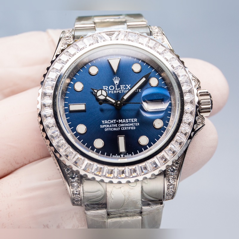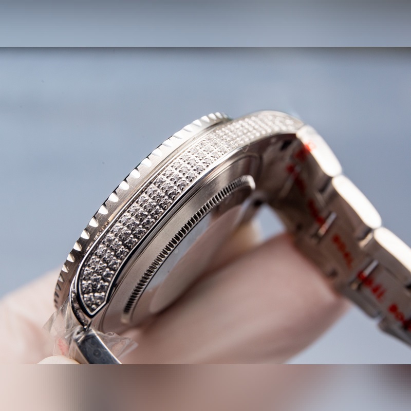 Rolex’s global limited edition gem model – Yacht-Master, has pushed the limit in aesthetics. In this watch, you can combine your love for jewelry and Swiss watches. The bezel, case, and clasp are all inlaid with Swarovski diamonds. It is a walking work of art, a symbol of identity and status, and the aura is clear at a glance. The real object is amazing and can’t be put down. The movement uses the soul blue hairspring 3135, which symbolizes Rolex, and the performance is extremely stable. The case and watch size is 40mm, and every detail is perfectly reproduced one by one. The strap is forged with 904L stainless steel. The strap is a classic oyster shape, with brushed technology on both sides and high polishing in the middle. The clasp has a double insurance buckle like the original, and the clasp engraving is clearly visible. (An additional rubber strap is included) Mirror sapphire mirror. Super luminous text, the text color is more delicate, creating a visual effect consistent with the original. It is shocking and noble. You deserve it