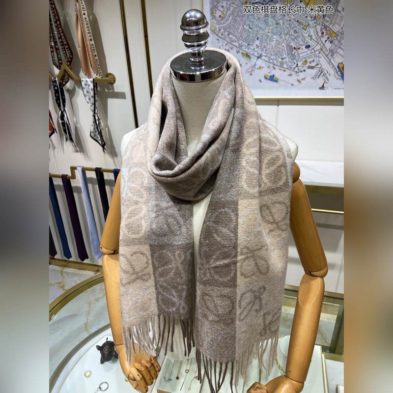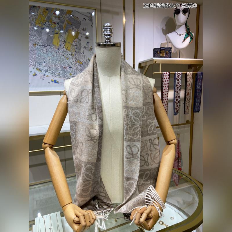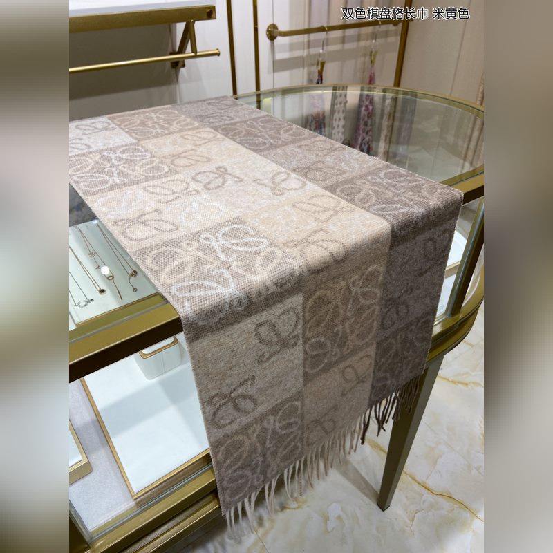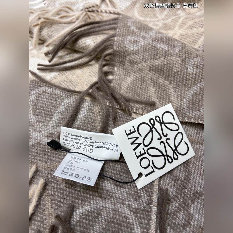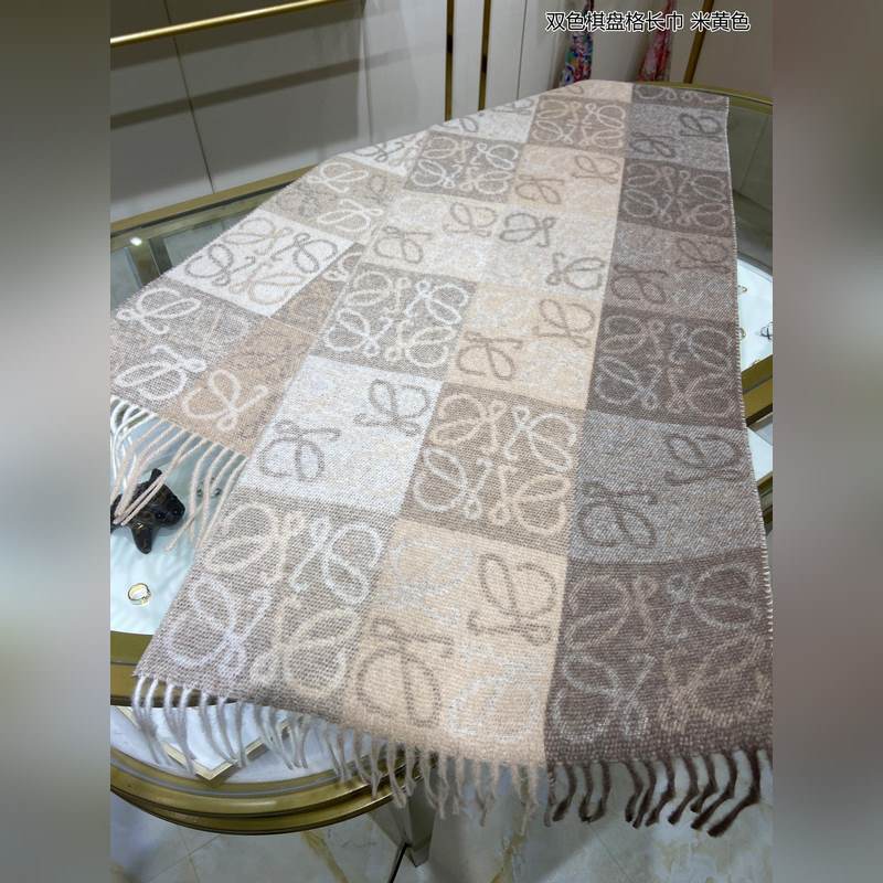 Top-grade original unisex Loewe two-color checkerboard long scarf. I was lucky to get this brand’s products. It’s really rare. We rarely place orders in China. The styles are really pitiful. As Spain’s top luxury brand, Loewe adheres to tradition, craftsmanship, and enthusiasm, exuding a unique Spanish aristocratic atmosphere. This scarf is a custom-made scarf for the window display of the Barcelona counter. The overall composition is the most classic LOGO style design of their brand. Specifications: 40x200cm, 90% wool + 10% cashmere