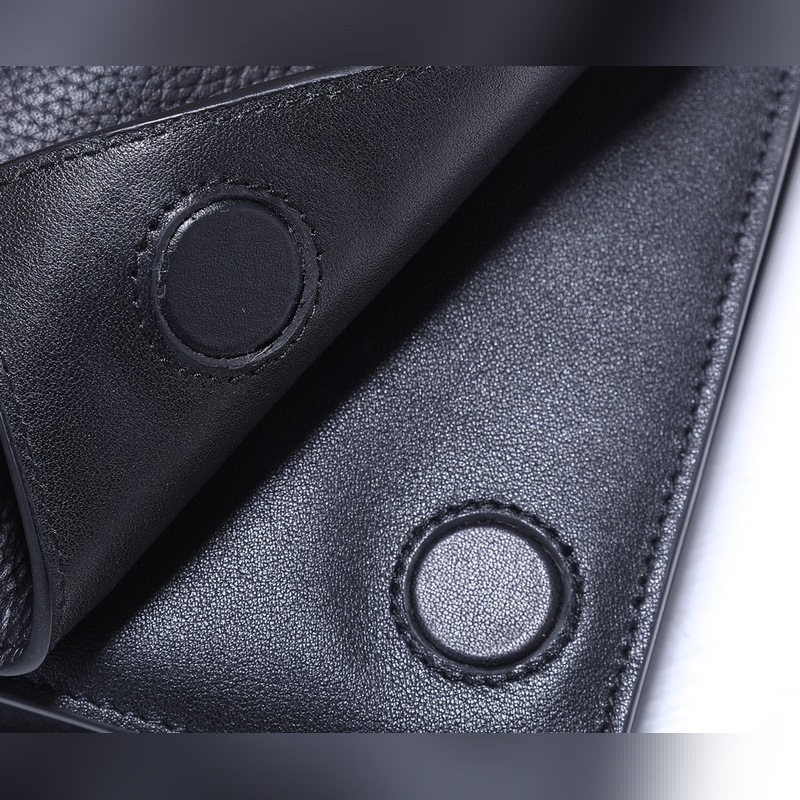 Detachable shoulder strap, polished steel accessories, metal engraved logo on the front, front compartment, 8 card slots, imported tumbled pattern cowhide, length 26x height 18x bottom 5cm