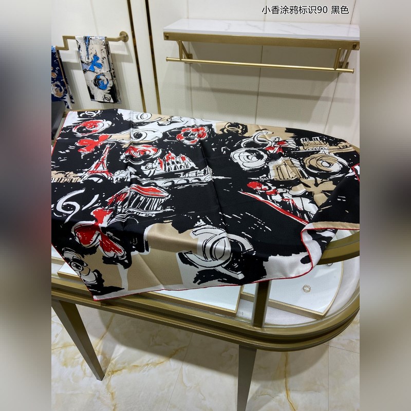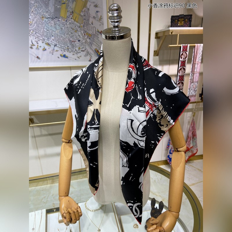 Chanel graffiti logo 90 silk square scarf, grab VIP recommendation, must act quickly, high-end, great love, women’s beauty, very limited stock, can be used in all seasons, really beautiful, very, very moving, the effect of wearing it is simply beautiful, the quality is very perfect, the whole scarf gives a big brand aura while being very delicate and beautiful, absolutely worth buying, once you get the real thing, you will be glad that you are a woman, a great product worth tasting, perfect temperament and taste, Ditails first choice, VIPs, 90*90, 100% top twill silk
