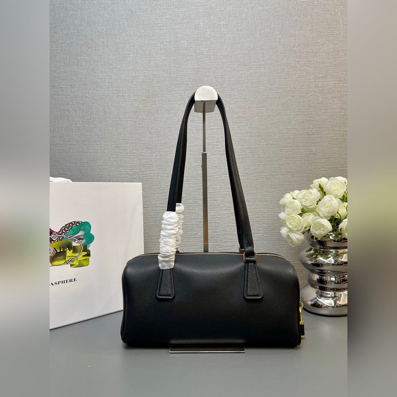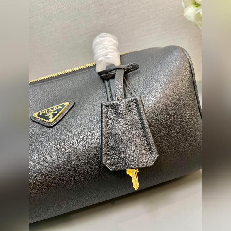 The top original new model (1BB127 full leather) has arrived. The long handle bowling bag and zipper handbag have elegant geometric lines that outline the exquisite silhouette of this handbag, winding and orderly, exuding a modern atmosphere. The structured bag body is made of leather, created with exquisite craftsmanship and equipped with exquisite details, showing the brand’s craftsmanship. The detachable leather keychain, shiny metal accessories and the iconic enameled metal triangle logo add details and ingenuity. There is a zipper pocket inside, and the size is 29×12.5×10cm