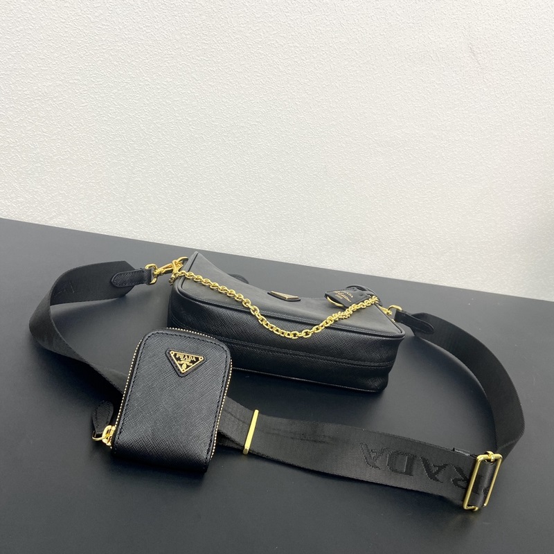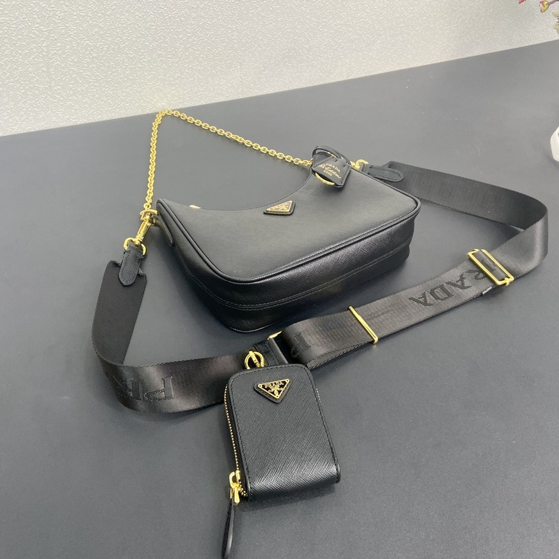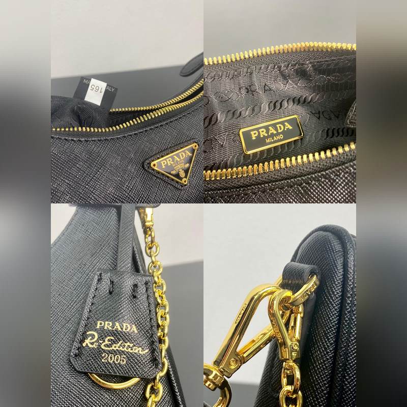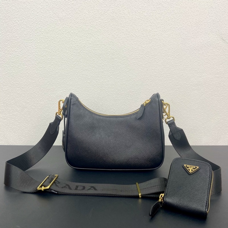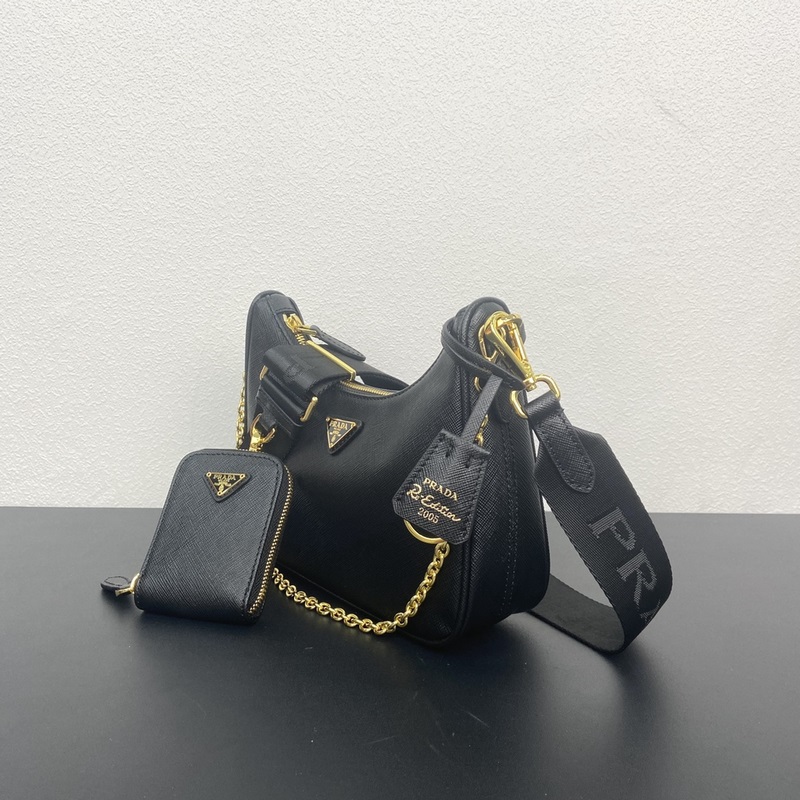 Top original single (new version) 2024 hot upgraded version baokuanqnylon Hobo hand/armpit bag 1BH204 original cross pattern detachable home Re-Edition 2005 Saffiano leather name plate with keychain Removable and adjustable logo fabric shoulder strap Removable zippered leather pouch Removable metal chain shoulder strap Top zipper closure Nylon lining Enameled triangular metal logo Size: Length 22 × Height 18 × Width 6.5CM