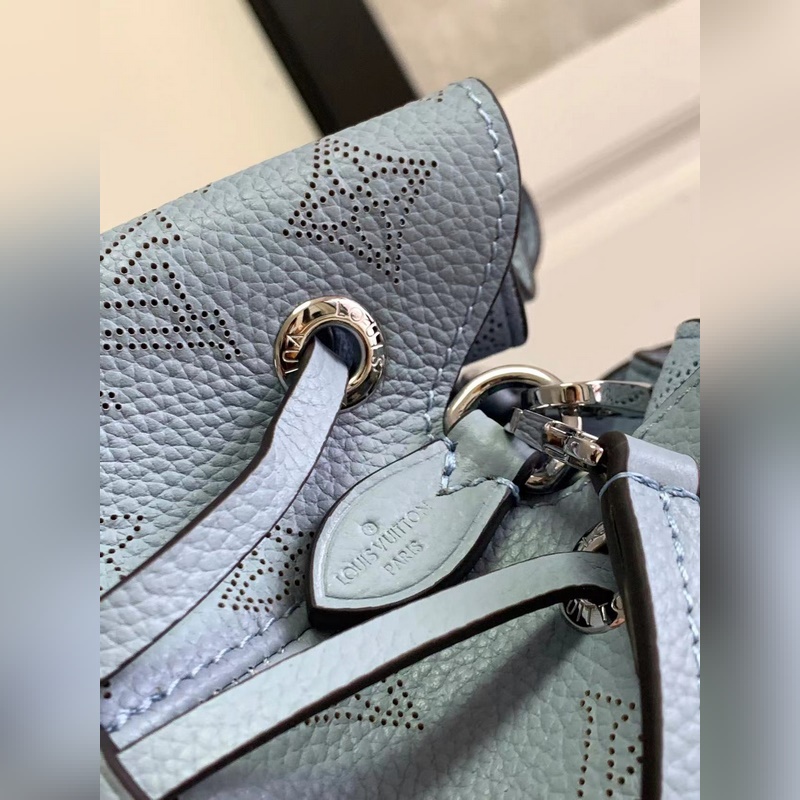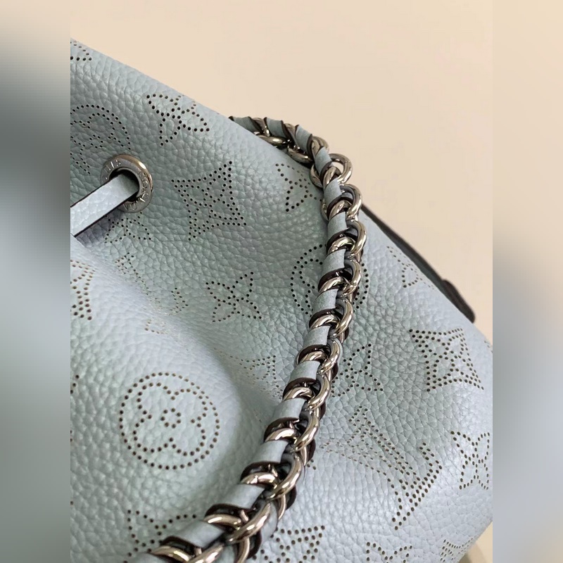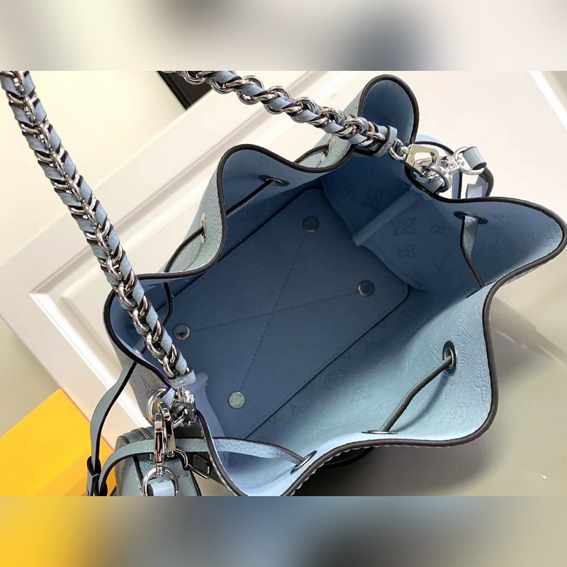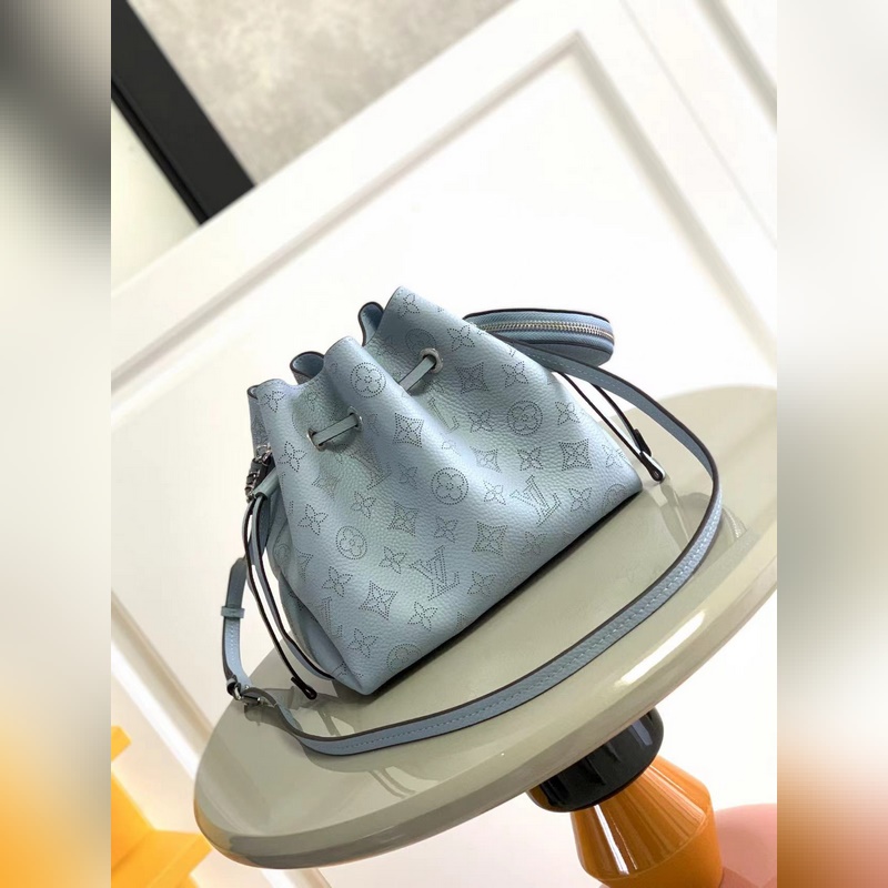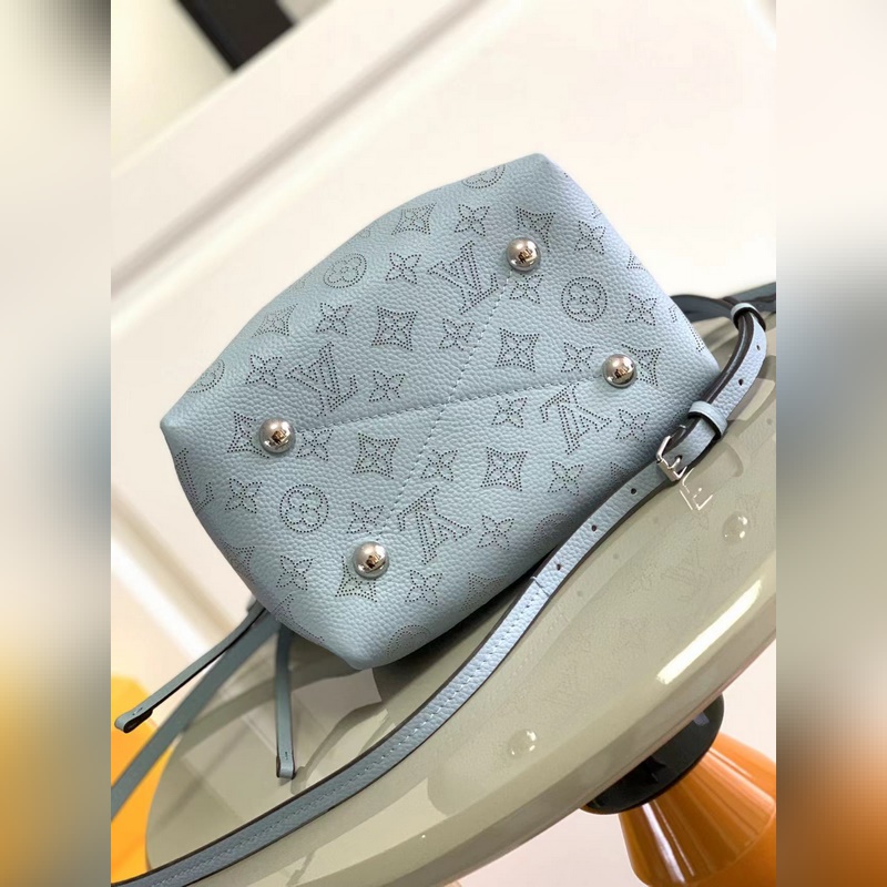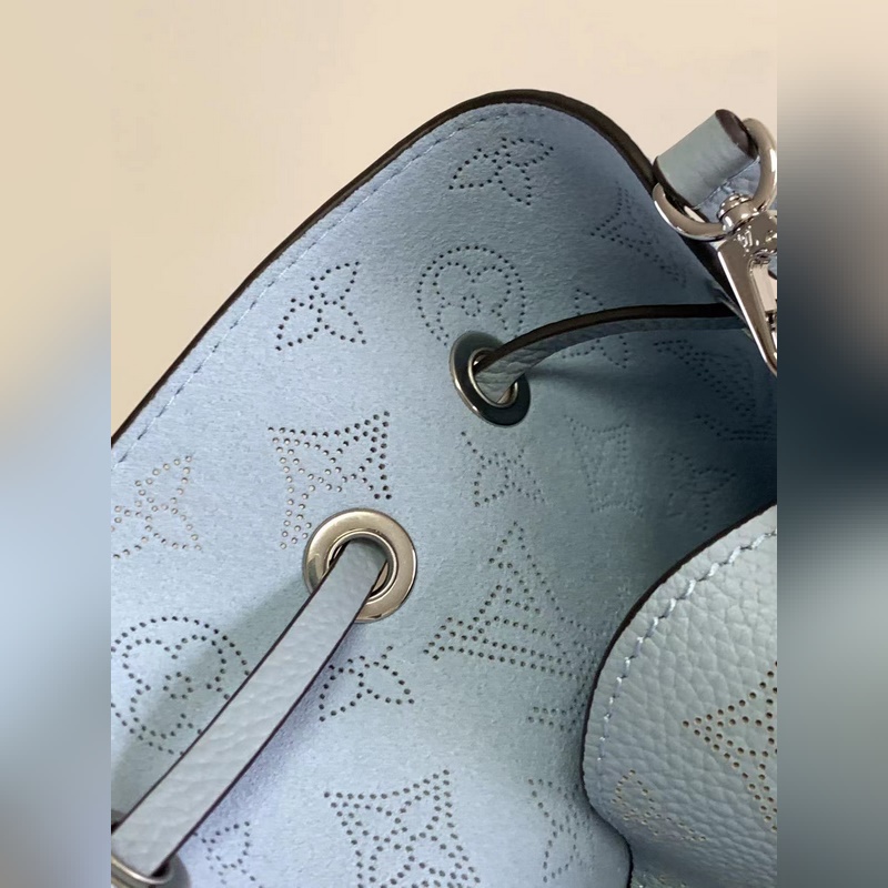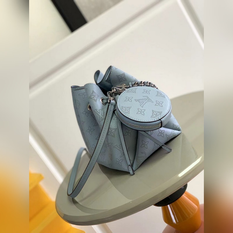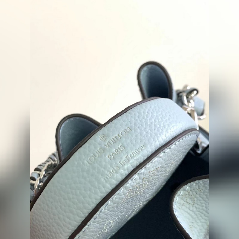 Top original M57201 M57068 light blue BELLA handbag The Bella bucket bag uses Monogram perforated calfskin to create a small configuration, and then makes the same pattern in a pocket-sized proportion to live in the round coin purse, full of modern style. Metal and leather braided handles and detachable leather shoulder straps enable a variety of carrying methods. Size: 19 x 22 x 14 cm