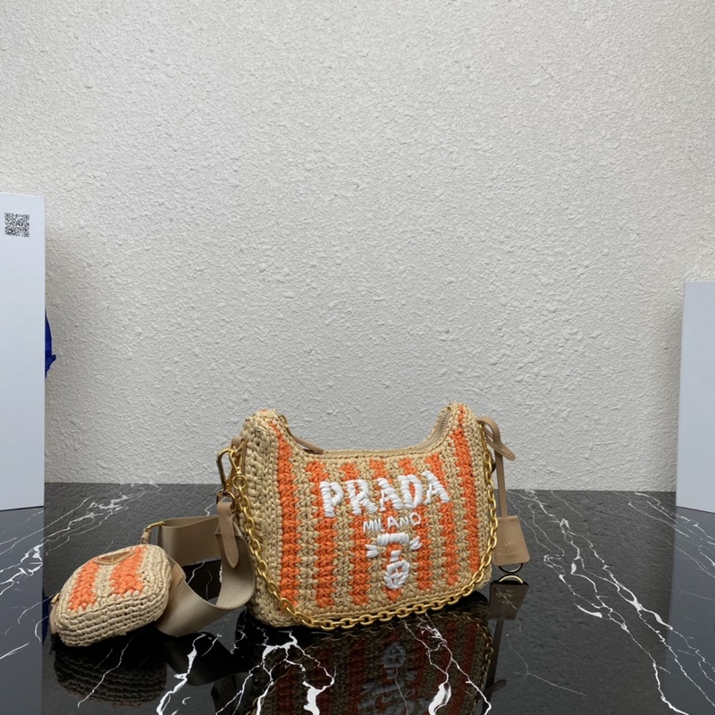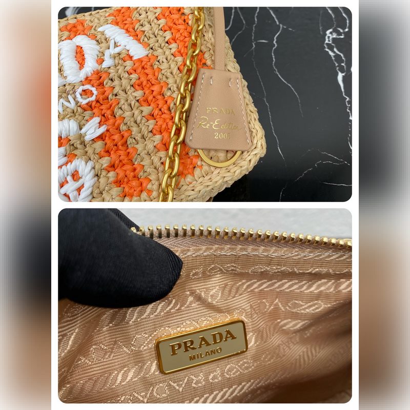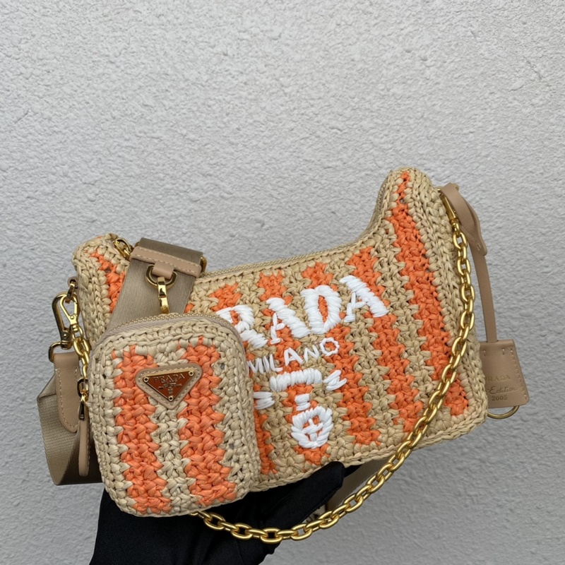 Top-grade original new raffia three-in-one 1BH204, this pure hand-woven striped series, the woven big logo three-in-one design is great, one bag three uses this complex workmanship looks particularly atmospheric/fashionable, the favorite is that there is a small pendant (small bag) hanging on the shoulder strap, the effect on the body is very good, the rate of turning heads is 100%, a must-have in summer, hurry up and get it Size: 23cm*16cm*7cm