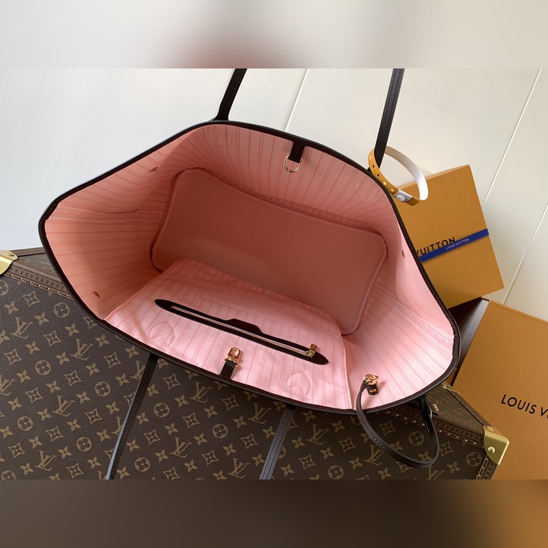 The Neverfull large tote bag is made of soft Monogram canvas with cowhide trim, and the spacious configuration incorporates colorful fabric lining. The straps on both sides can show a different style whether tightened or stretched. The slender handle is convenient for shoulder or elbow carrying, and the detachable zipper bag can be used as a clutch or pocket.