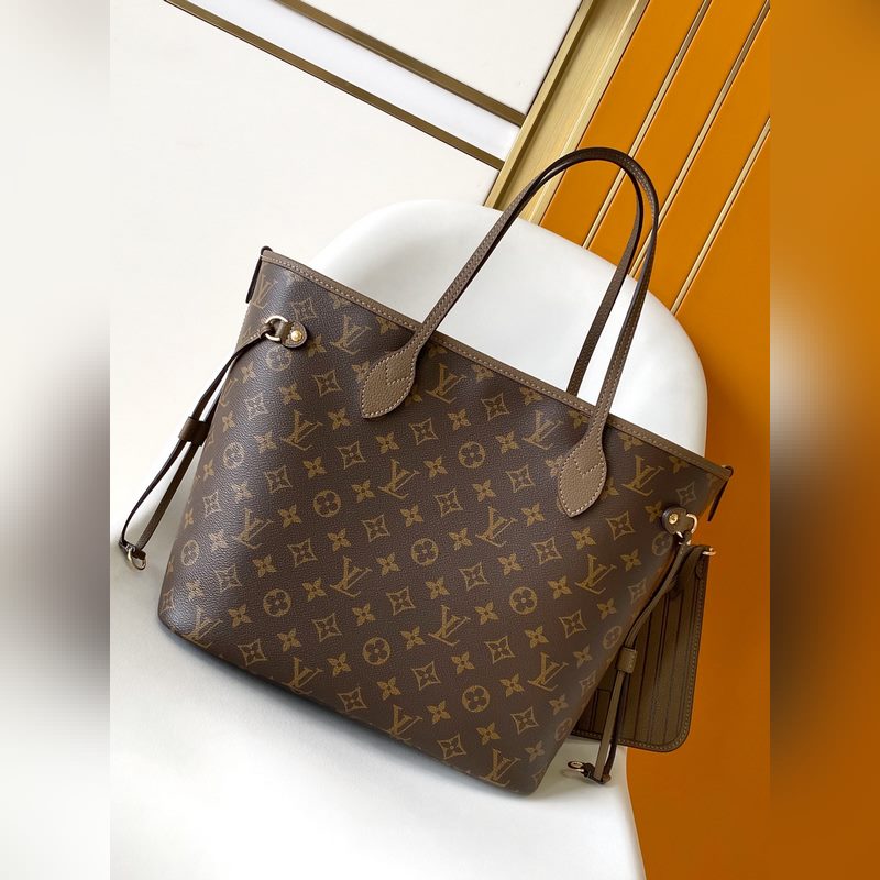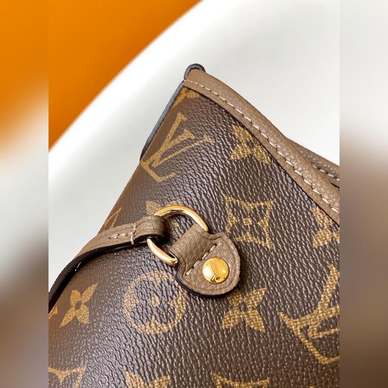 Small size M12099 black M12109 gray M12106 rose red M12099 khaki The Neverfull Bandoulière Inside Out BB handbag interprets the double-sided version of the classic design this season, with the iconic Monogram canvas and grained leather on the front and back. The detachable zipper bag can be used alone or hung on the outside. The detachable shoulder strap is convenient for crossbody, and the dazzling metal parts add exquisite details.