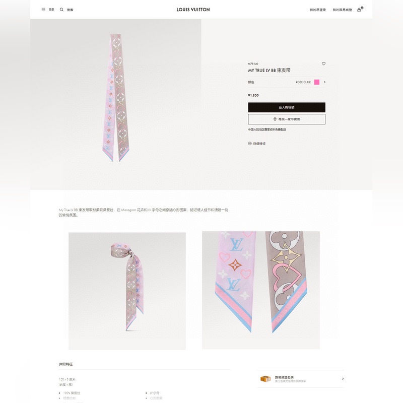The silk double-layer streamer can be worn on both sides. The Tribute To silk headband puts classic design patterns such as the Alma, Seedy, Bo te Chaeau and Dauhine handbags center stage, paying tribute to the all-over Monogram pattern and brand logo with exquisite and intricate brushstrokes, highlighting the elegant style of Louis Vuitton.