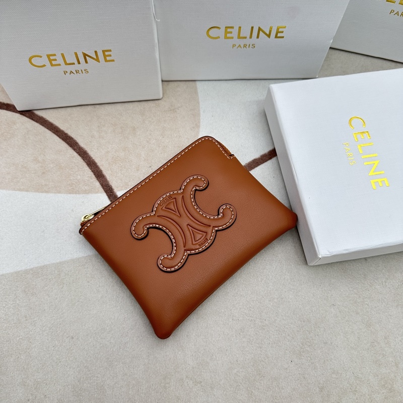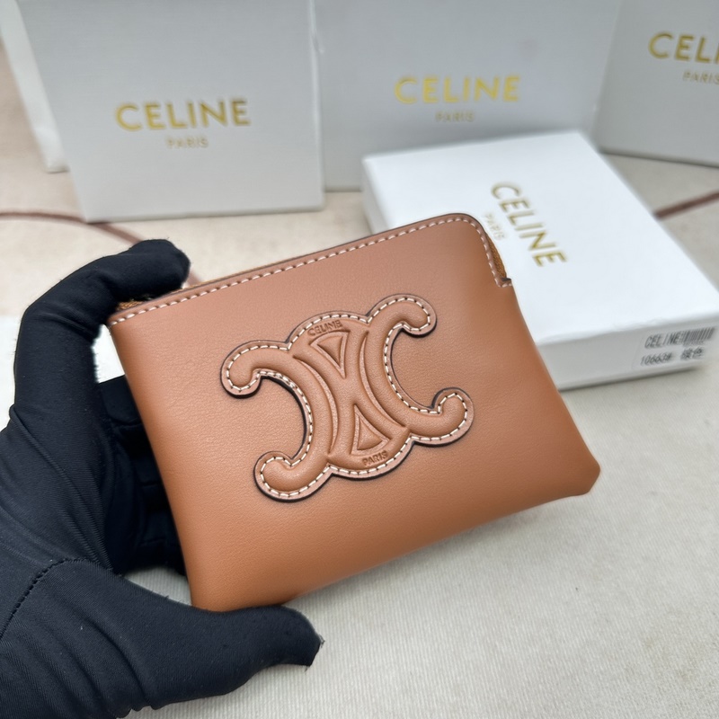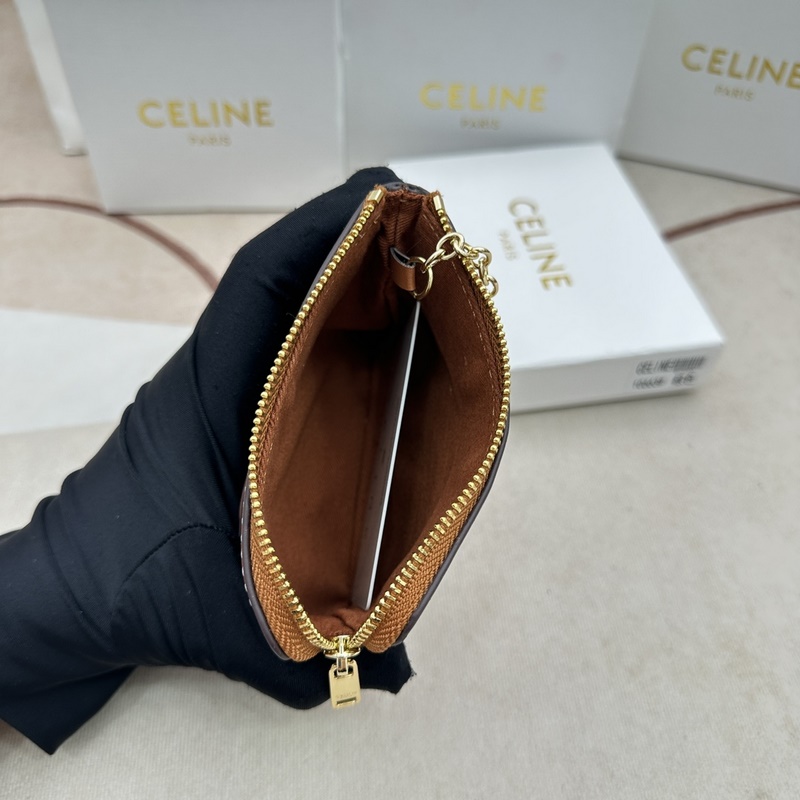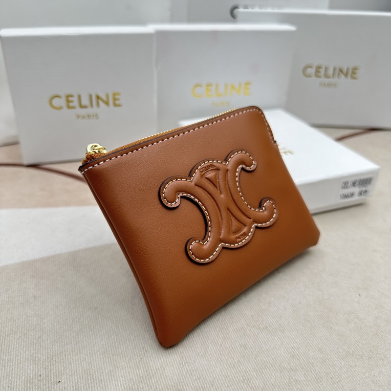 TRIOMPHE smooth calfskin coin and card holder calfskin lining : calfskin/fabric zip closure 1 screw key holder. Color: black brown. Dimensions: 5 x 4 inches (13 x 9.5 cm) Reference No.: 10663