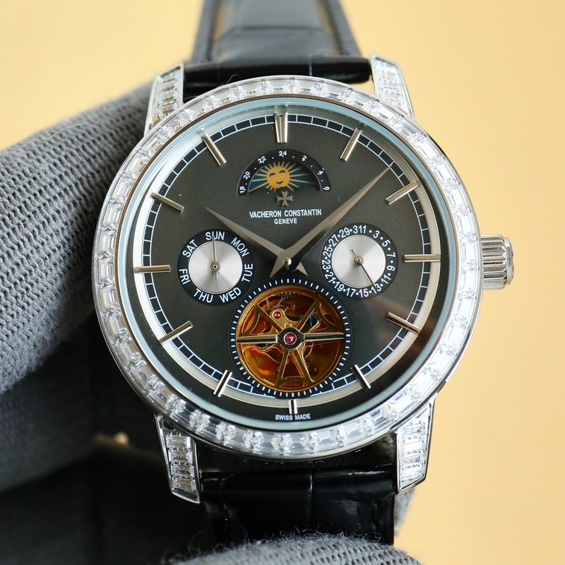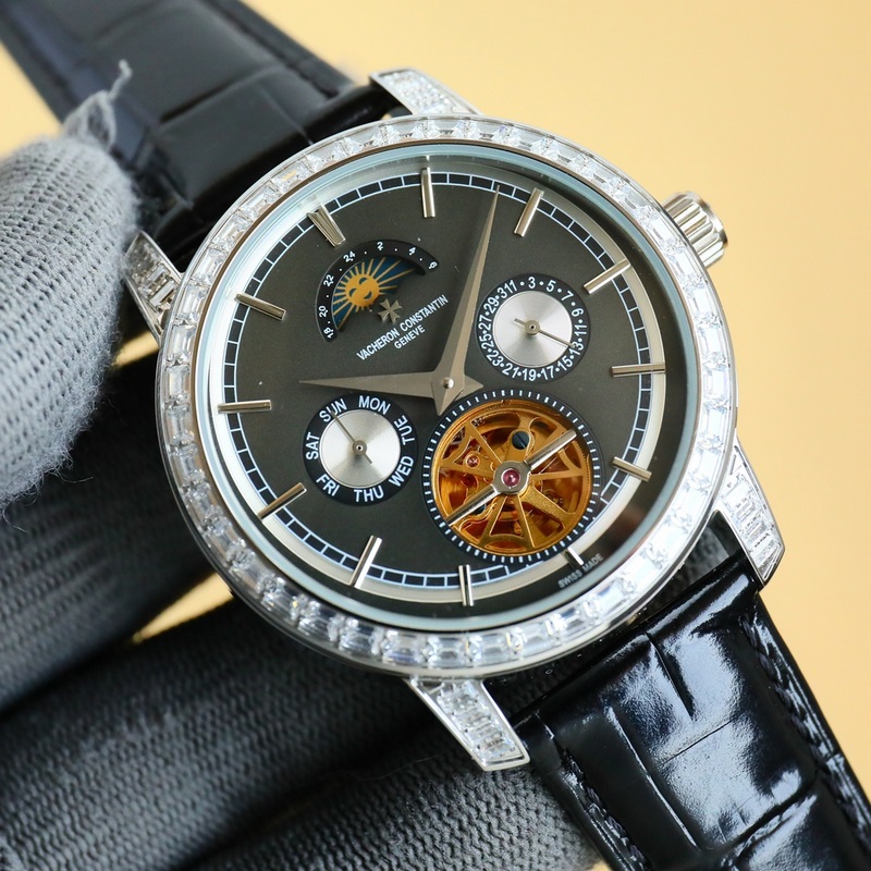 ③ The case is made of imported 316 stainless steel. Paired with imported calfskin. Original Vacheron automatic buckle. Size 44mm. Highly hard mineral water glass crystal glass Super waterproof.