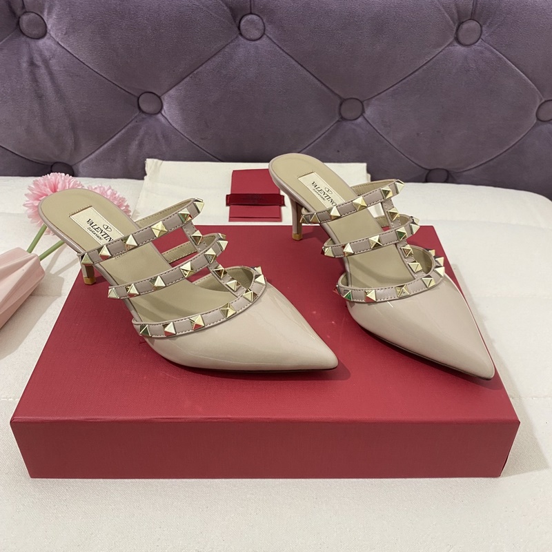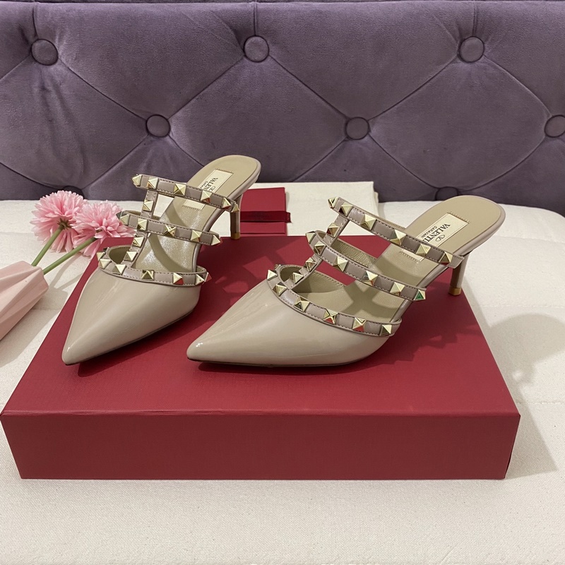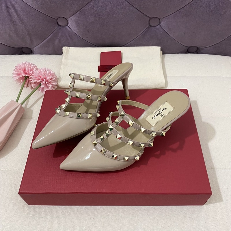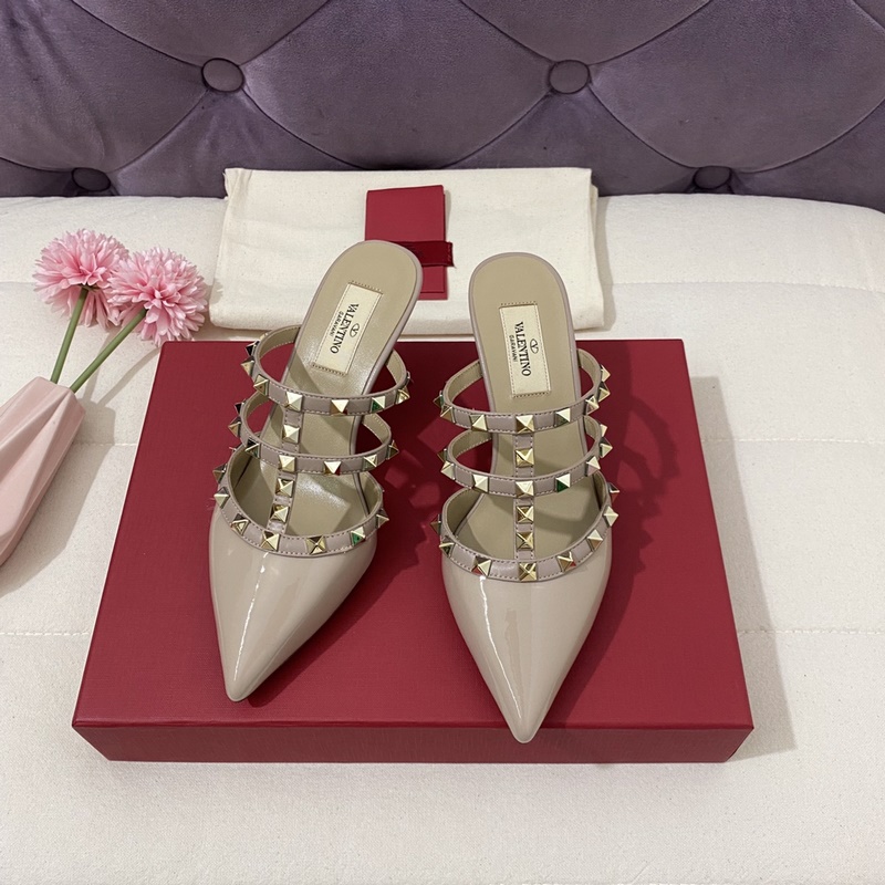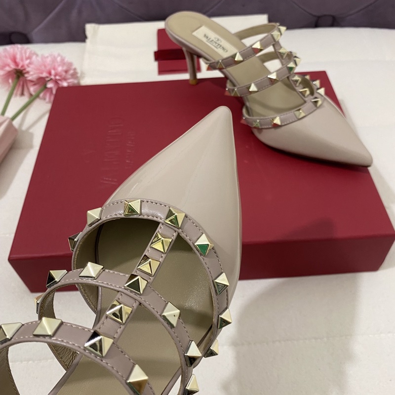 VALENTINO top quality Valentino VT rivet slippers strong goods original last, unique eagle beak toe more beautiful original paint rivets, all hand-stitched and nailed, produced by a large factory, upgraded texture