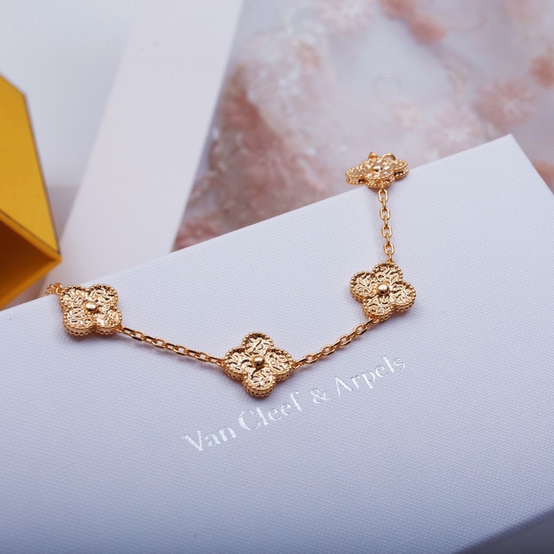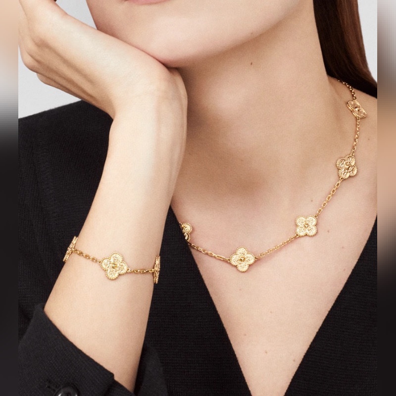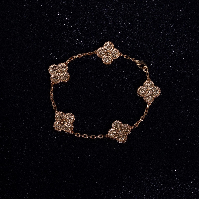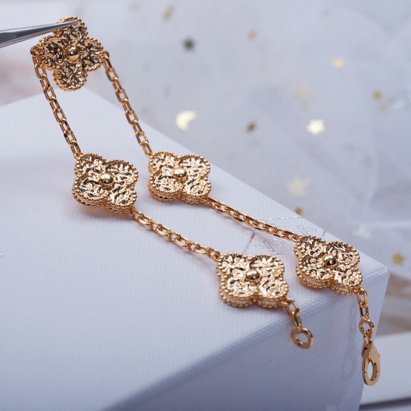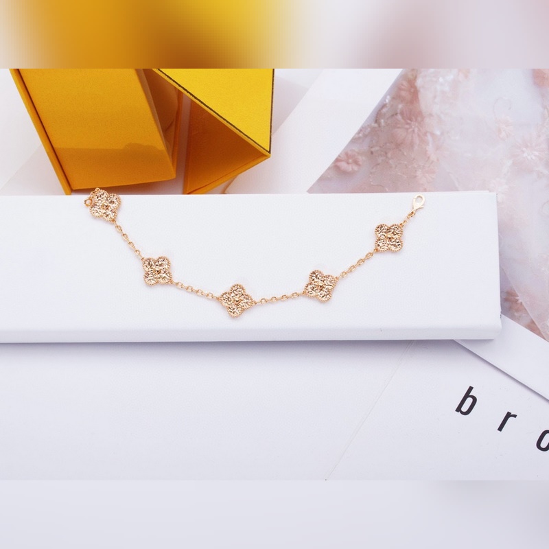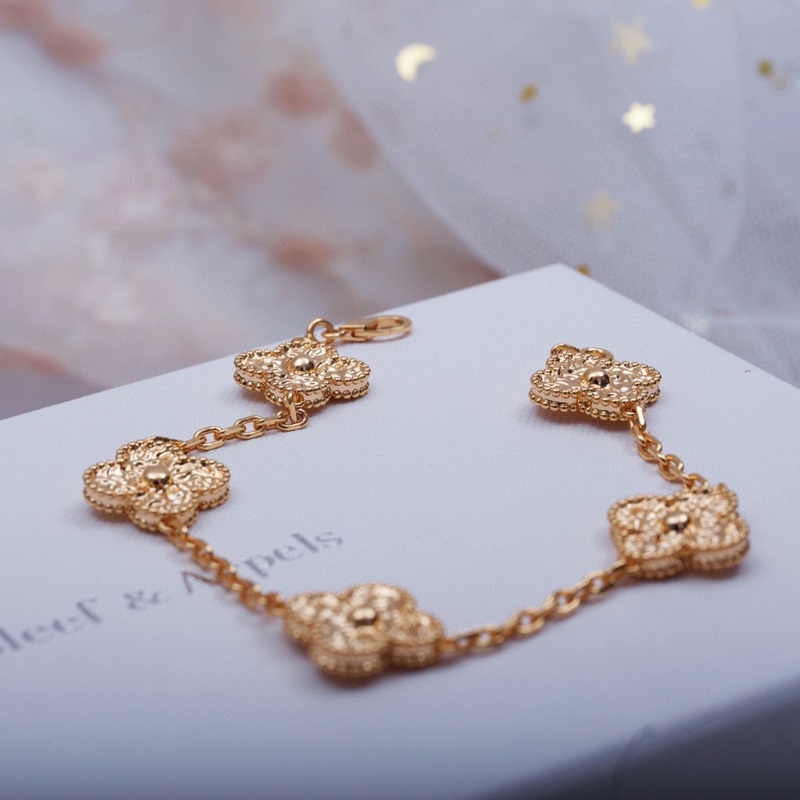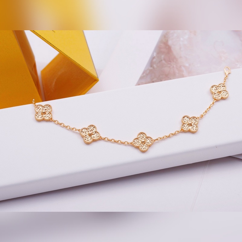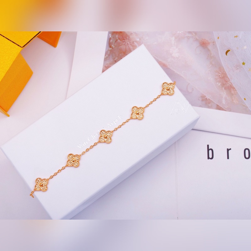 Classic Van Cleef&Arpels four-leaf clover five-flower bracelet, vca gold-stamped four-leaf clover shines like a diamond, this plain gold bracelet is very high-end when worn alone or stacked. Remember that there are rose gold and gold options, and both white belts are beautiful. Yellow skin, choose rose gold, the real thing is much more beautiful than the photo 135180165, top version 220260250