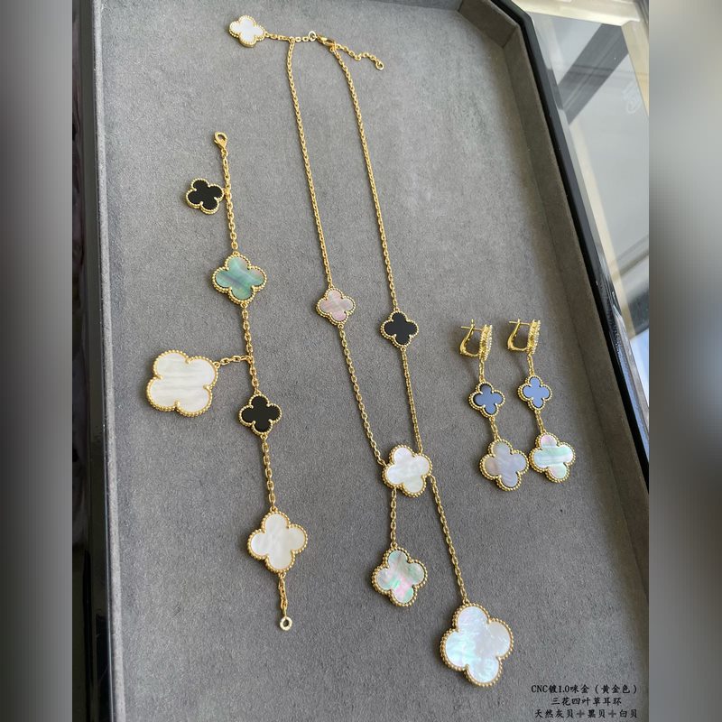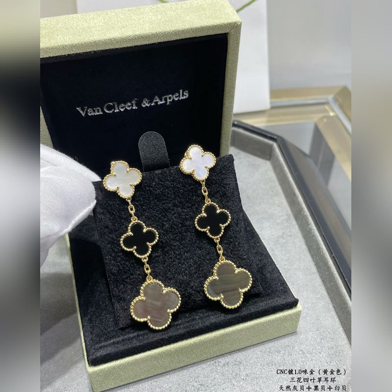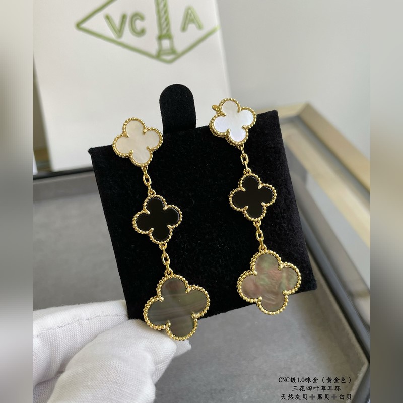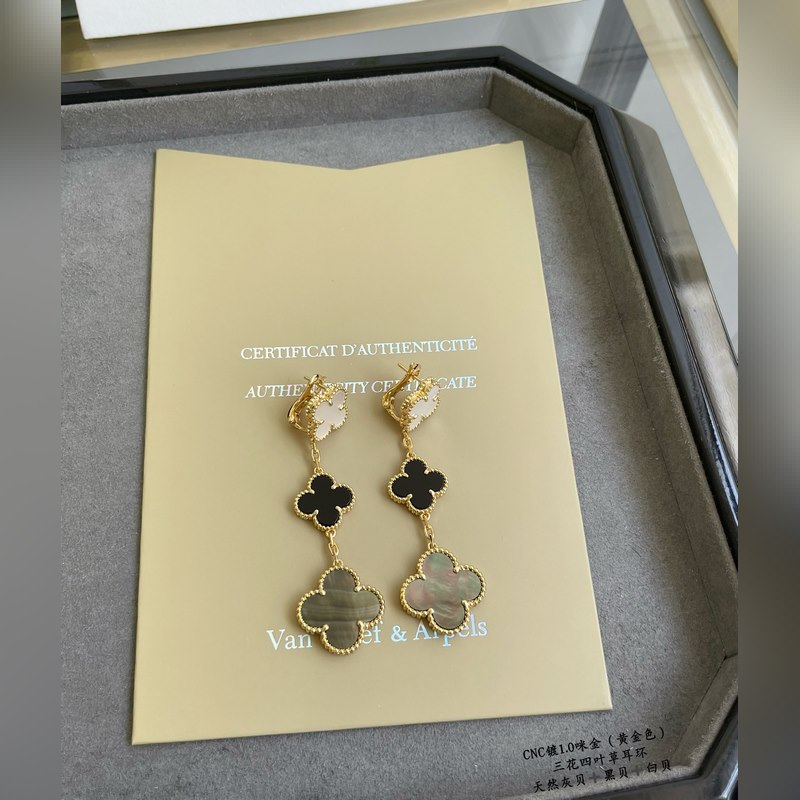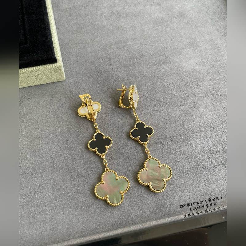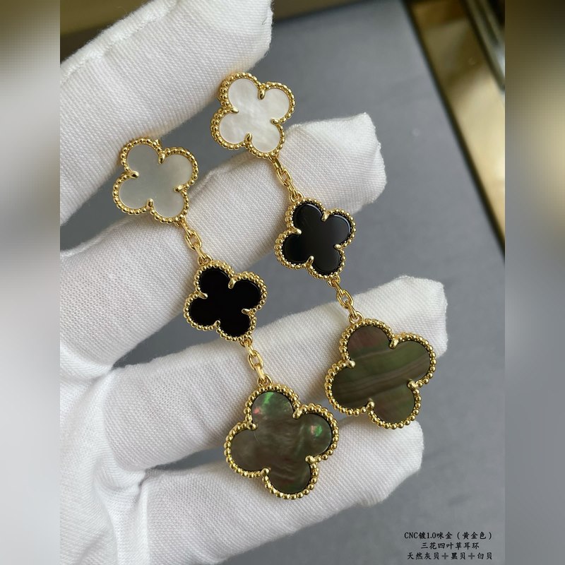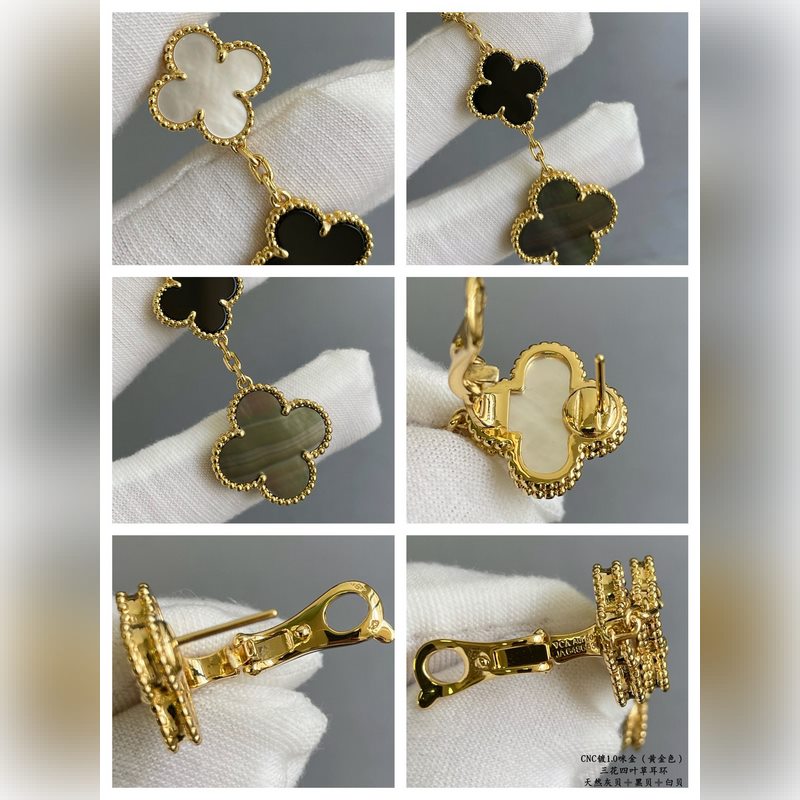 V gold plated 5240480 vca three-flower four-leaf clover earrings, market premium version 1:1 version high-end customization vca Van Cleef&Arpels limited edition v four-leaf clover counter limited edition super suitable for travel absolutely essential. The highest perfect quality on the market