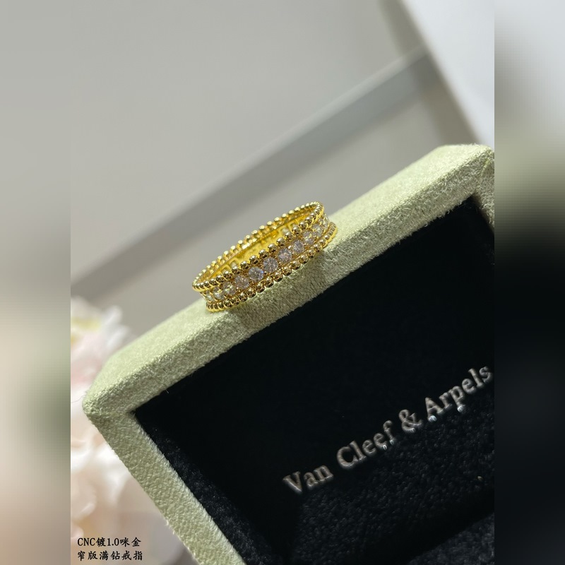 V gold plated with gold, size 5678. VCA narrow version single row full diamond ring, genuine open version, all full diamond inlay, this counter is more than 200,000, any angle is a drama VCA Van Cleef&Arpels full diamond ring, gorgeous design, this design can only be fully reflected by big brands, follow the counter, such a beautiful thing, you must have it