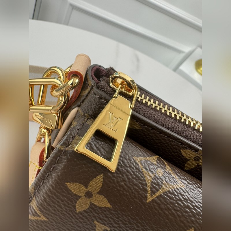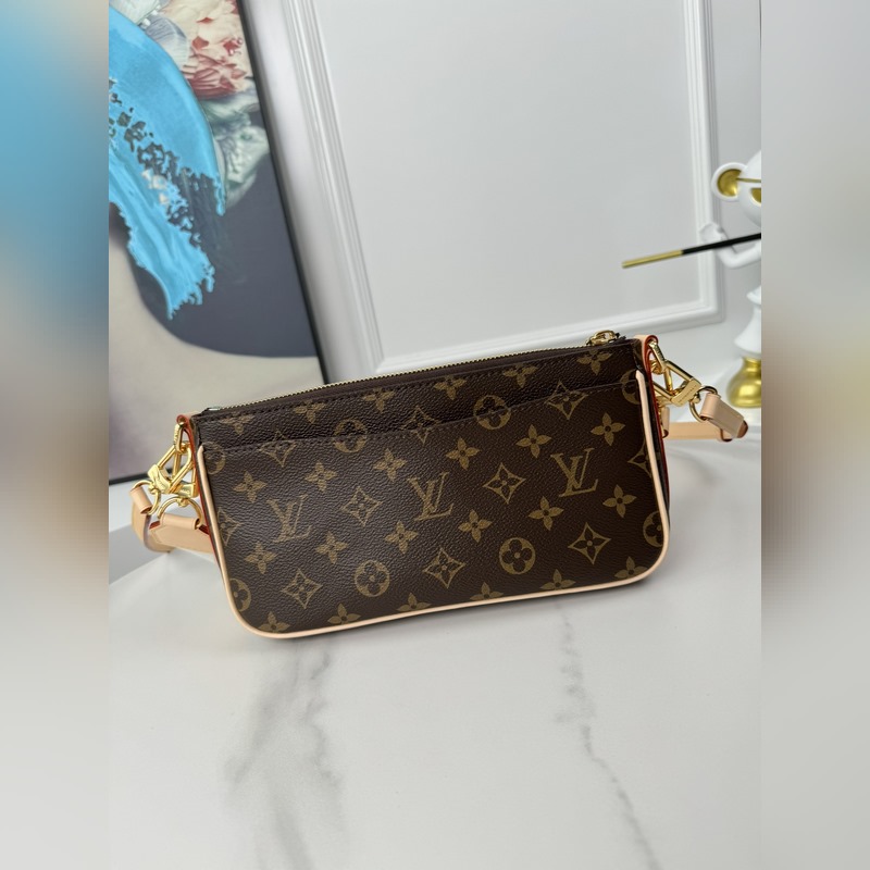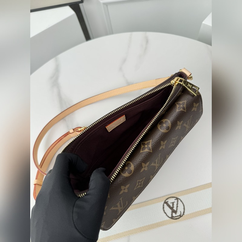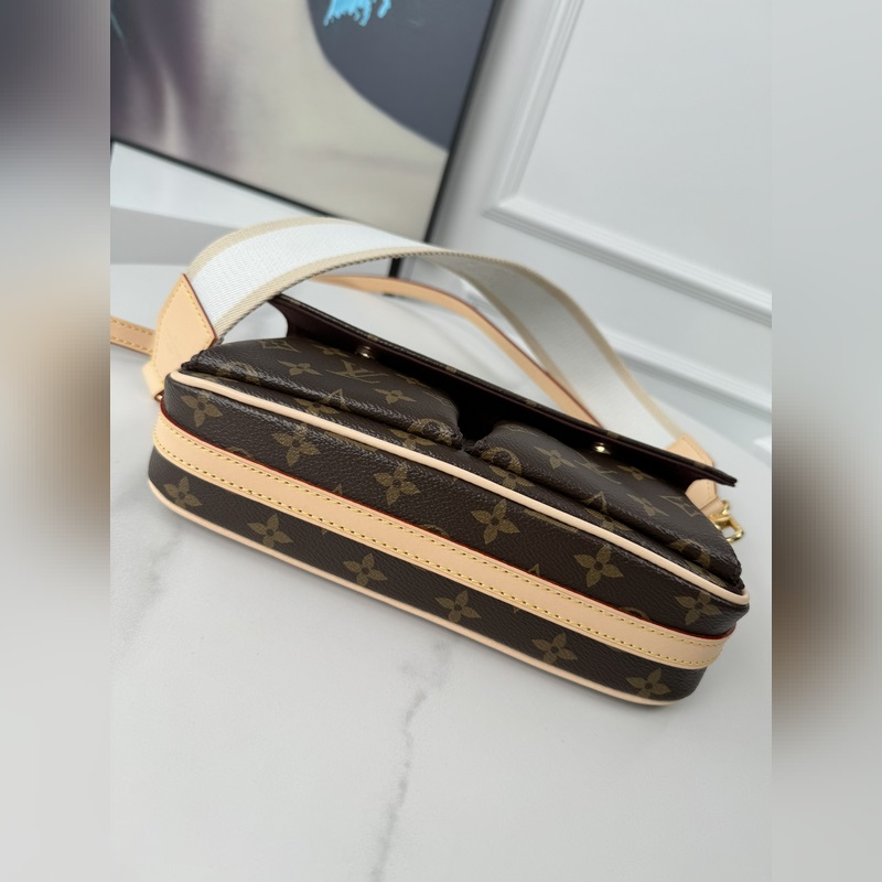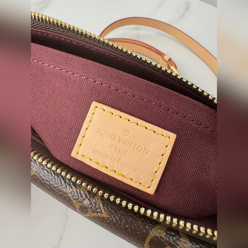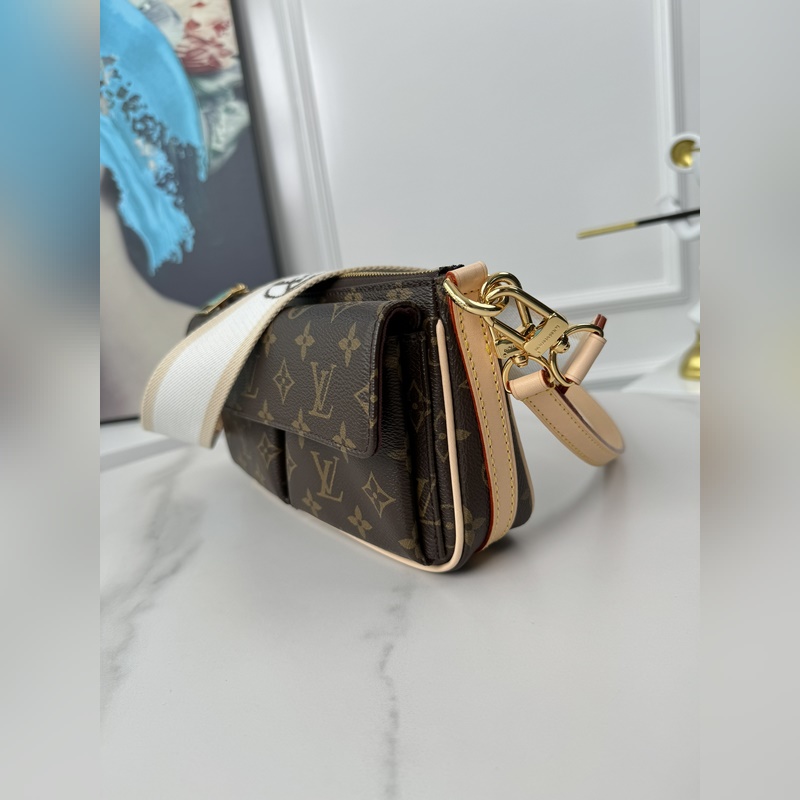 『With full set of counter packaging』 Exclusive real shot of overseas original M46999 The Vibe handbag draws inspiration from the brand’s Viva-cité handbag created in 2003, and uses Monogram canvas to create a compact configuration. The internal and external pockets make it a good choice for daily use, and the leather shoulder strap and the short fabric shoulder strap with the LV Circle logo enable multiple carrying methods. Size: 25×15×8cm