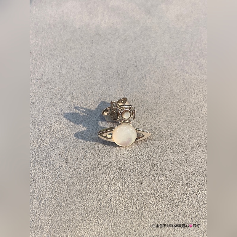 Empress Dowager Silver Heart Saturn AB Earrings