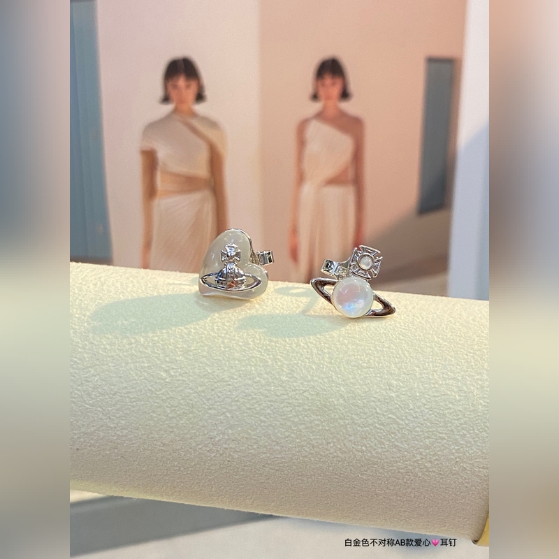 A playful pair of Vivian Empress Dowager Saturn heart earrings are here,
