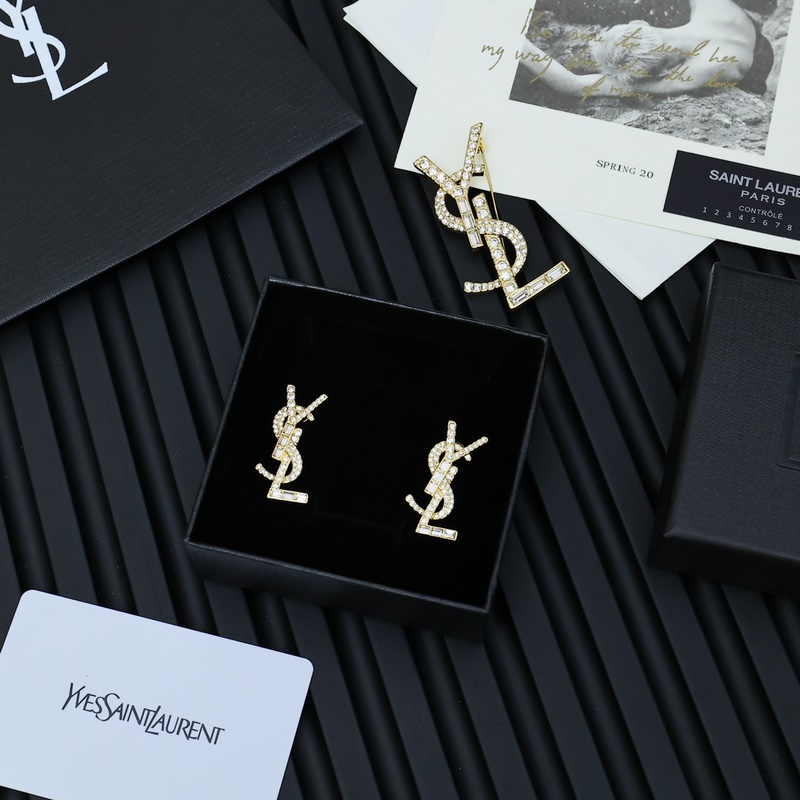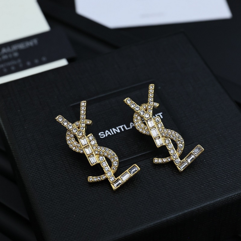 Yves Saint Laurent full diamond letter earrings and brooches, irregular diamonds are spread around the letters, forming a three-dimensional shape. Yves Saint Laurent was founded in 1961. Its elegant, abstract, bold and unique design style has made it one of the most famous brands in the luxury fashion industry.