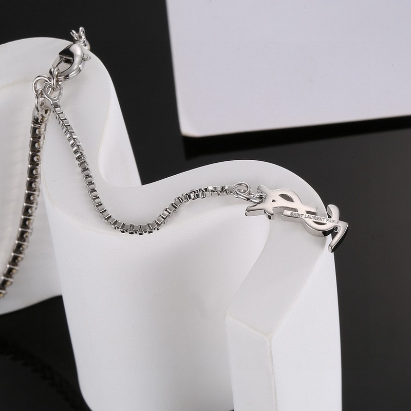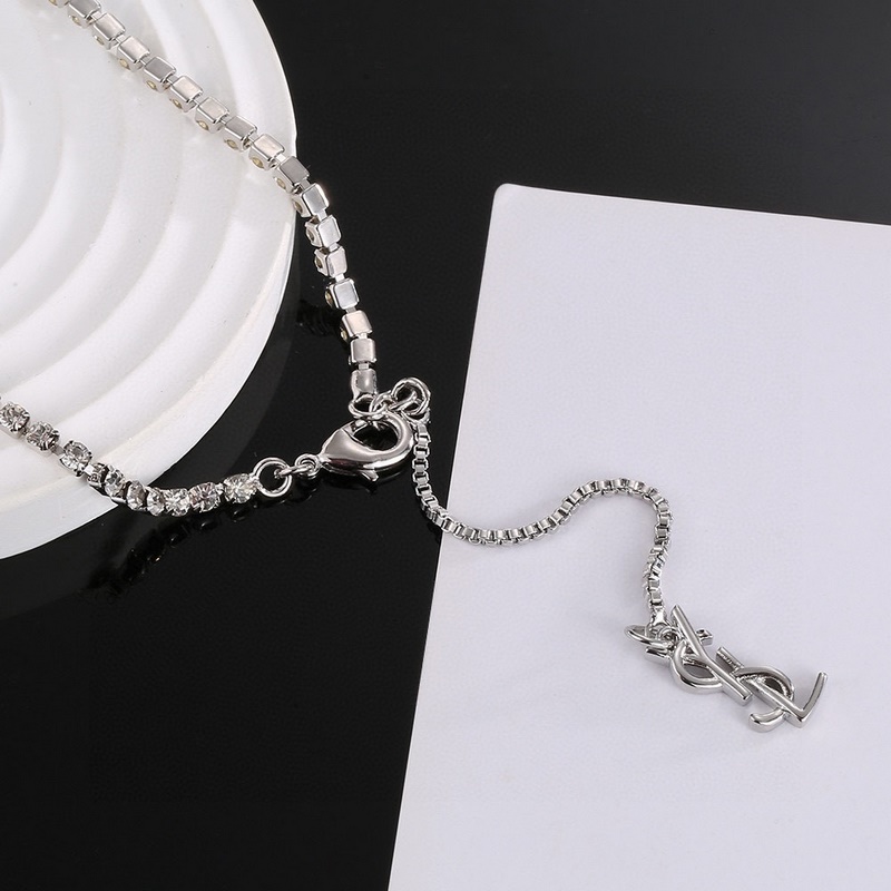 Yves Saint Laurent Alphabet Tassel Full Diamond Necklace Original Brass Material Yves Saint Laurent was founded in 1961. Its elegant, abstract, bold and unique design style makes it one of the most famous brands in the luxury fashion industry. It leads the exquisite, fashionable and novel French fashion style.