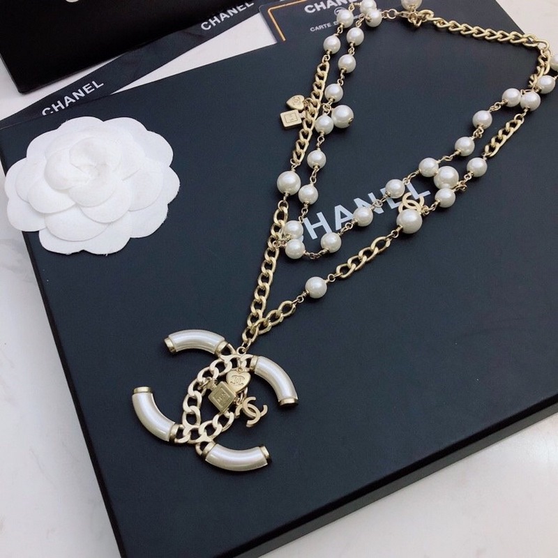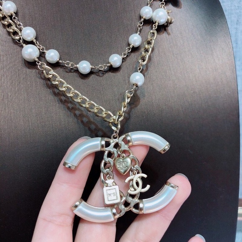 ZP version Xiaoxiang CHANEL double pearl necklace Elegant and elegant Seiko design Carving Very beautiful color matching Fashionable and playful Necklace 07038150